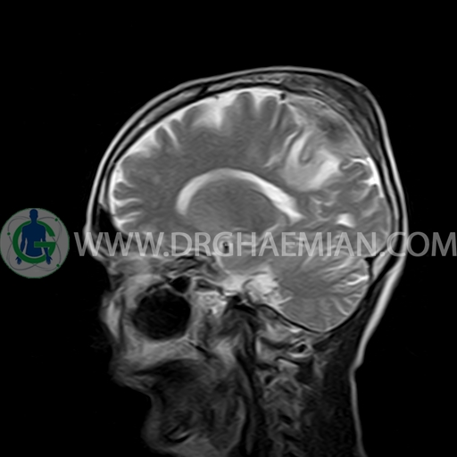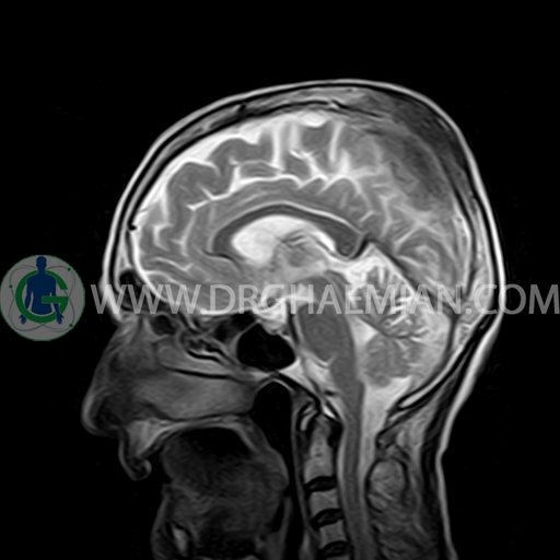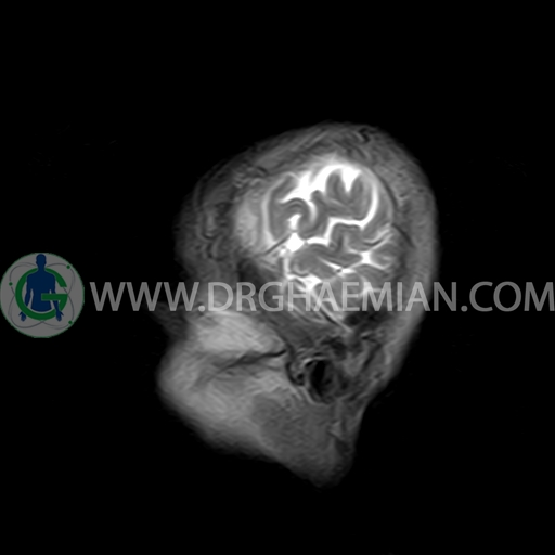 ام آر آی مغز با استفاده آهنربا های قوی و امواج رادیویی تصاویری از مغز و بافت های عصبی پیرامونی آن ایجاد می کند. در این کیس مننژیوم به همراه هیپراستوز استخوانی سمت چپ دیده می شود.