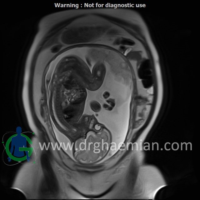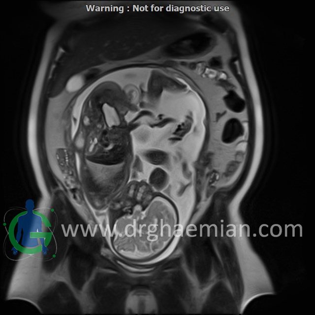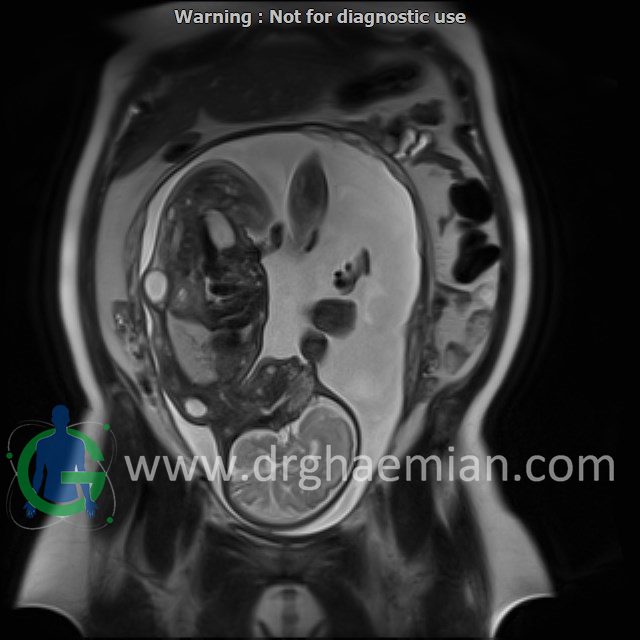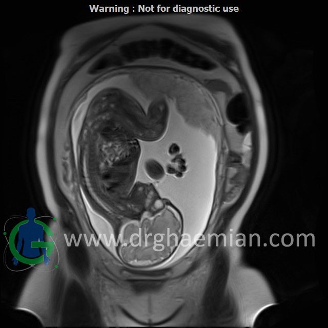تصویربرداری تشدید مغناطیسی جنین (MRI) از یک میدان مغناطیسی قدرتمند، امواج رادیویی و یک کامپیوتر برای تولید تصاویر دقیق از جنین در داخل بدن شما استفاده می کند.در این کیس کیست های متعدد در کمر و گردن بیمار دیده میشود