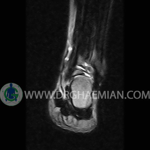 ام آر آی پا یک روش تصویربرداری از پا است که با استفاده از آهنرباهایی قوی تصاویری از پا ایجاد می کند. این تصاویر شامل قوزک، ساق پا و بافت های پیرامون آن ها می شود. ام آر آی از تشعشعات استفاده نمی کند. در این کیس گیرافتادگی خلفی مچ پا، سینوویت گذرا و کبودی استخوان دیده می شود.