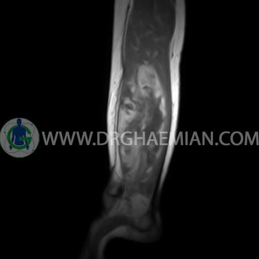 ام آر آی پا روشی تصویربرداری از پا است که با استفاده از آهنرباهایی قوی تصاویری از پا ایجاد می کند. این تصاویر شامل قوزک، ساق پا و بافت های پیرامون آن ها می شود. ام آر آی از تشعشعات استفاده نمی کند. در این کیس تومور جاینت سل به ابعاد 60x70x180 میلی متر، ضایعه نئوپلاستیک و متاستاز استخوانی دیده می شود.