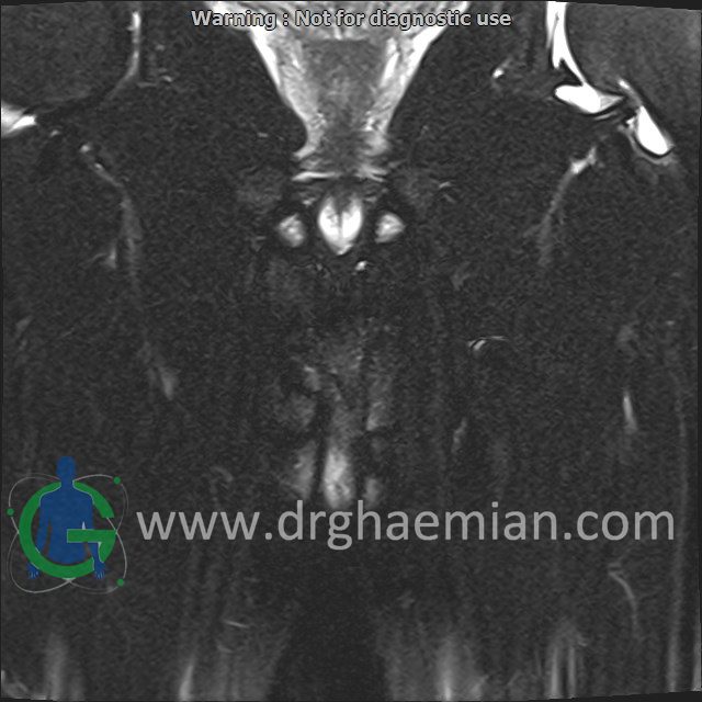 ام آر آی لگن یک روش تصویربرداری است که از طریق دستگاهی با آهنرباهای قوی و امواج رادیویی از ناحیه بین استخوان های ران تصاویری می سازد.در این کیس کیست به ابعاد 22*35 در بیضه راست و … دیده میشود
