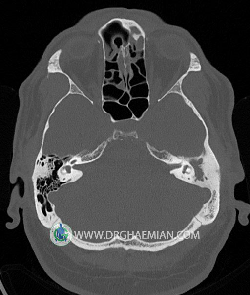 سی تی اسکن گوش داخلی به رادیولوژیست اجازه می دهد تا سطوح مختلف، یا اسلایس هایی از استخوان های که از جمجه به گوش می روند را از طریق امواج ایکس چرخشی مشاهده کند. در این کیس اودیت مدیا، ماستوئیدیت مزمن، اوتیت خارجی، انحراف سپتوم بینی، کونکا بولوزا و افزایش ضخامت سینوس ها مشاهده می شود.