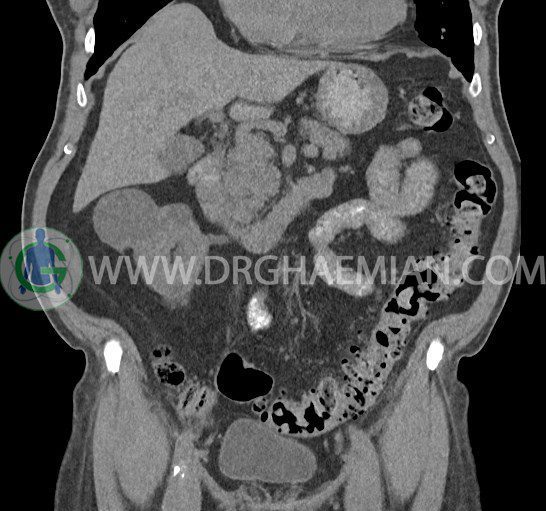 در سي تي اسکن اسپيرال شکم و لگن با و بدون کنتراست خوراکی و وريدی (مولتي ديدکتور 16 با مقاطع ظريف و بازسازي هاي ساژيتال و کرونال):