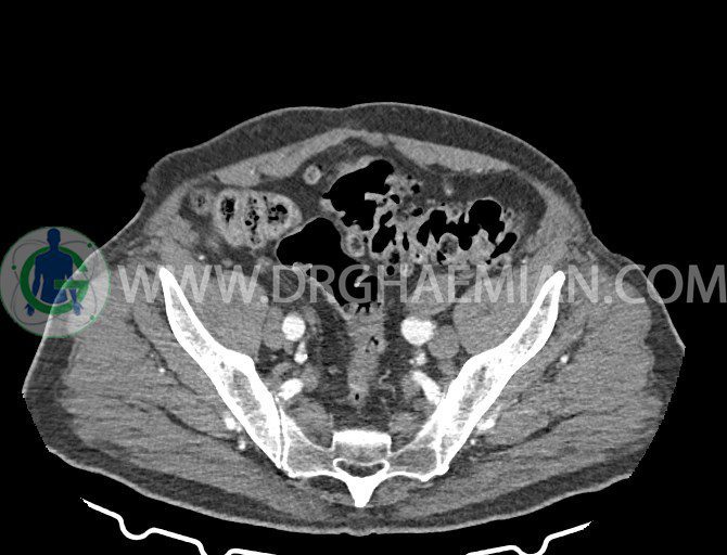 سی تی اسکن لگن یکی از روش های تصویربرداری با سی تی اسکن است. این روش با استفاده از تشعشعات تصاویر عرضی از ناحیه شکمی ایجاد میکند. در این کیس ديورتيكولوزيس، کیست های کورتیکال در هر دو کلیه، لنفادنوپاتی، کلسیفیکاسیون دیواره آئورت و شریان ایلیاک، تغییرات DJD ناحیه توراکولومبار و پروستات بزرگتر از عادی دیده می شود.