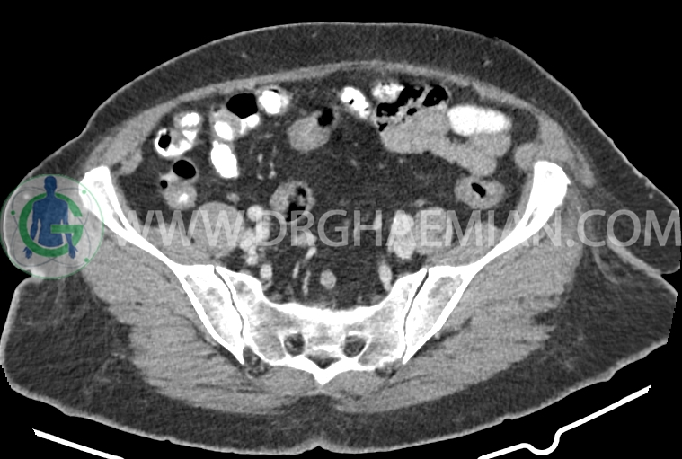 سی تی اسکن شکم و لگن از تششعات برای ایجاد تصاویر عرضی مقطعی از نایحه شکم و لگن استفاده می کند. در این کیس سرطان روده بزرگ، افزایش ضخامت دیواره رکتوم، کلسیفیکاسیون دیواره آئورت و … دیده می شود.