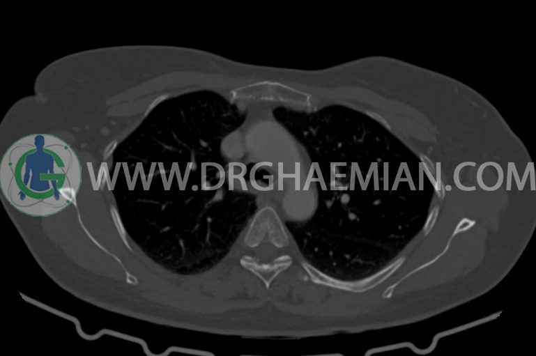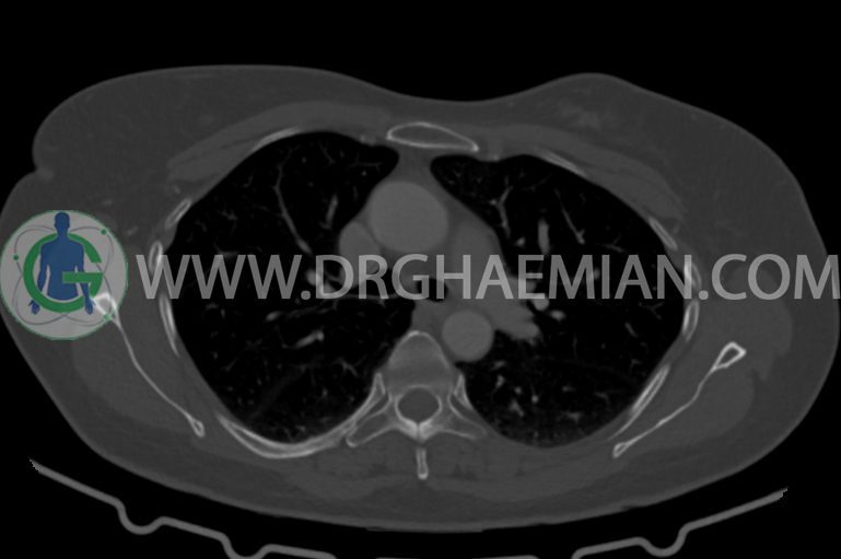 در سی تی اسکن اسپیرال ریه و مدیاستن – شکم و لگن با کنتراست خوراکی و وریدی (مولتی دیدکتور 16 با مقاطع ظریف و بازسازی های ساژیتال و کرونال) :