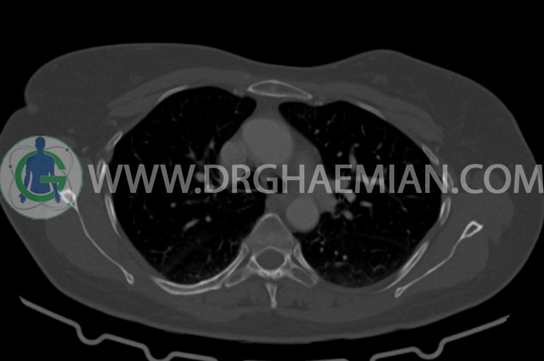 توده، ندول ریوی، پنومونی، پلورال افیوژن، جابجایی محتویات مدیاستن، کلسیفیکاسیون، کیست، فیبروز ریوی و Collection مشهود نیست.