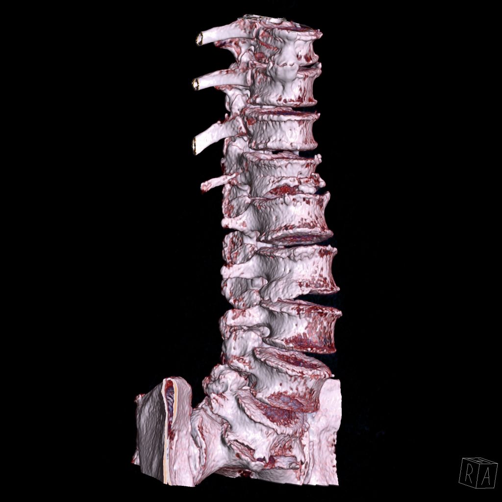 سی تی اسکن اسپيرال از مهره های T10 تا S1 (مولتي ديدکتور 16 با مقاطع ظريف و بازسازي هاي ساژيتال و کرونال و 3D):