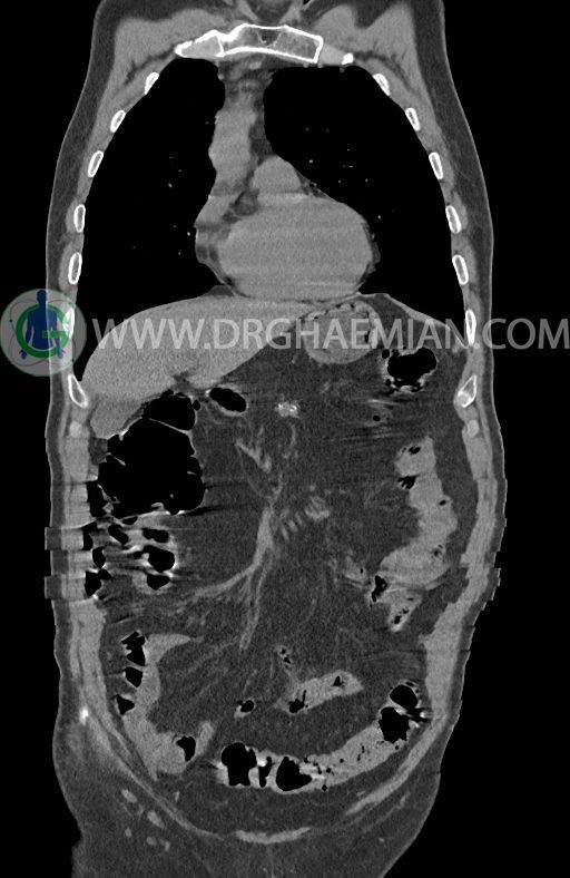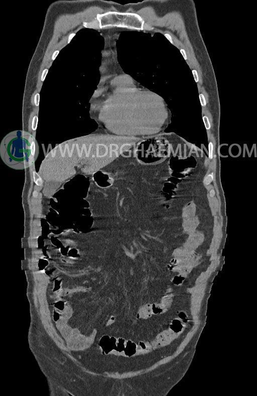 ضایعه ای در معده ، روده باریک و کولون مشهود نیست .