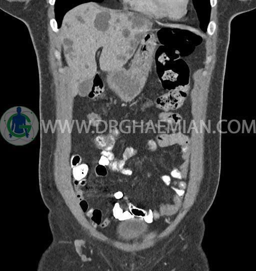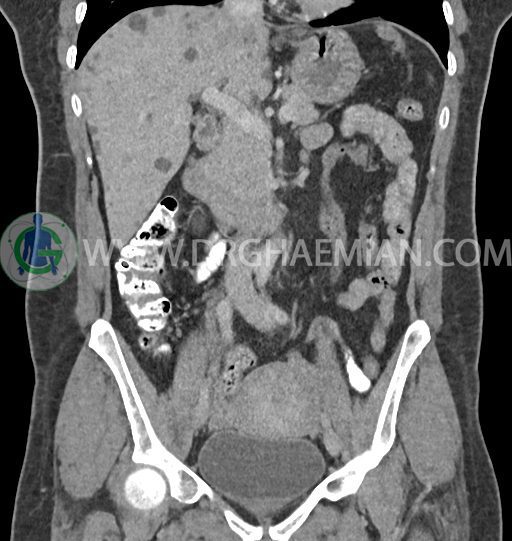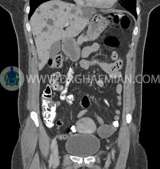 مایع آزاد در حفره شکم و لگن رویت نمی شود.