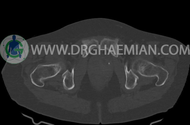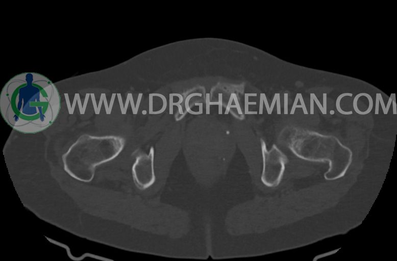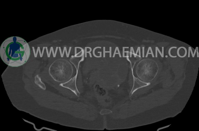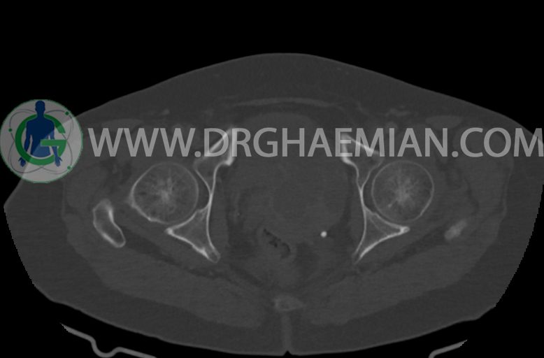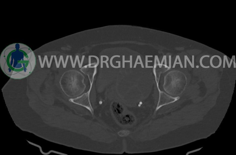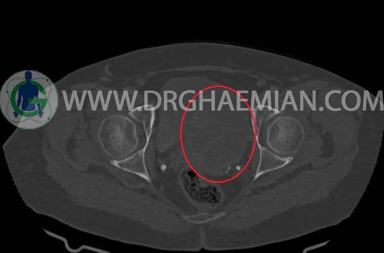 مایع آزاد در حفره شکم و لگن رویت نمی شود. ضایعه ای در مثانه مشهود نیست.