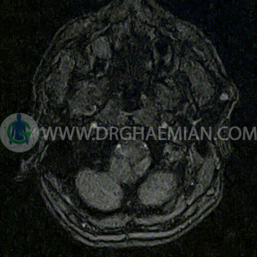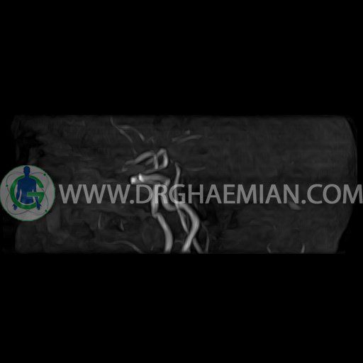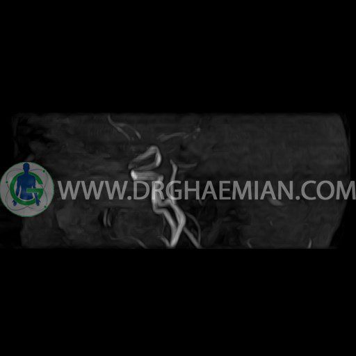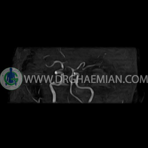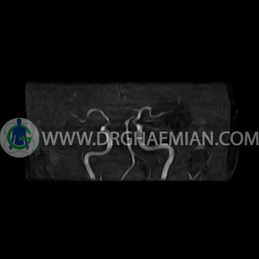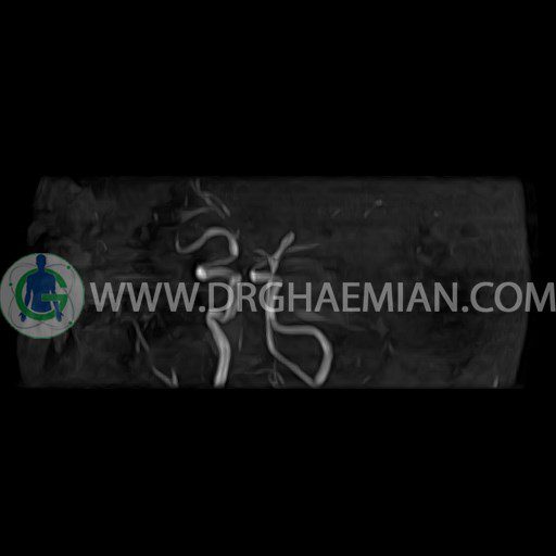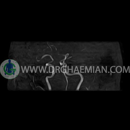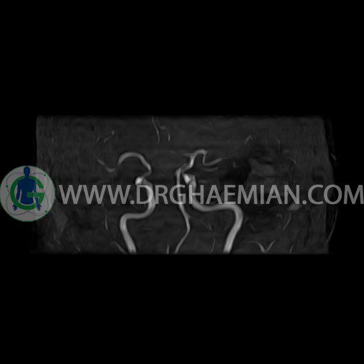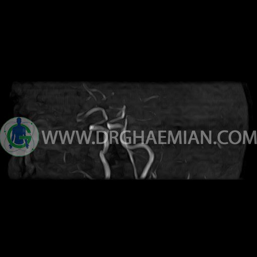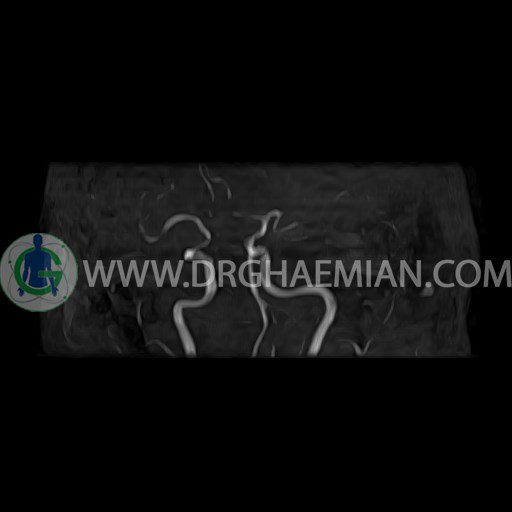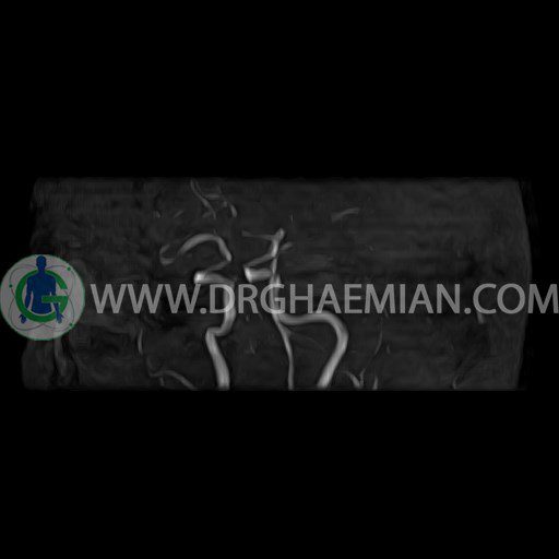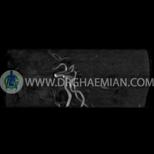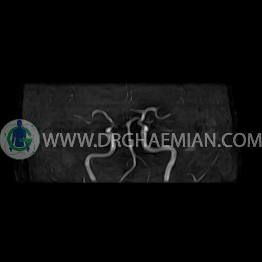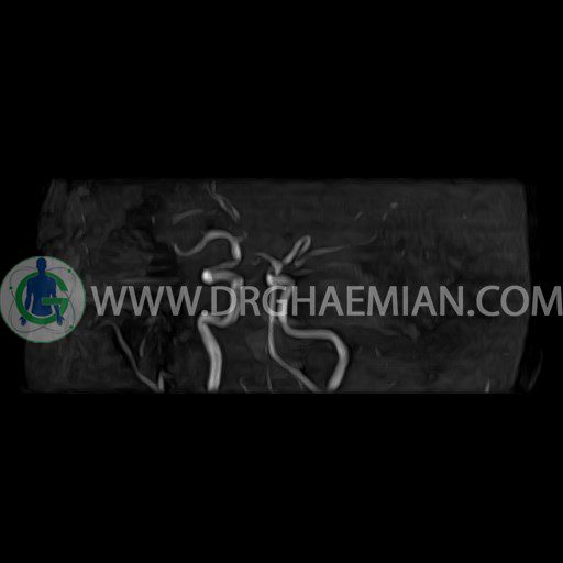 ام آر آنژیوگرافی با استفاده از آهنربایی قوی، امواج رادیویی و کامپیوتری هوشمند عروق خونی را ارزیابی کرده و به یافتن موارد غیرعادی کمک میکند. در این کیس وازواسپاسم و تنگی اسکلروتیک مغز و هیپوپلازی دیده می شود.