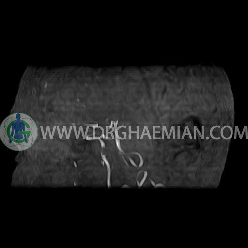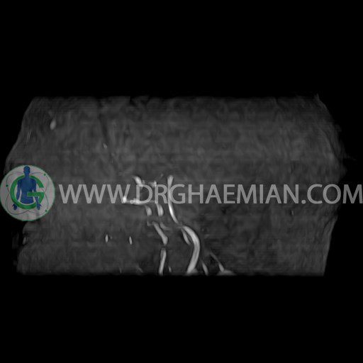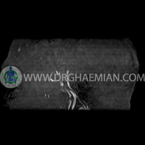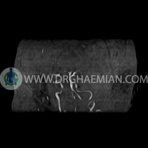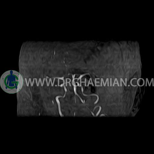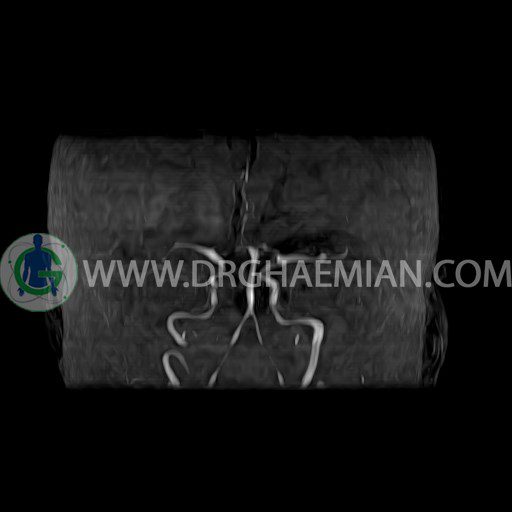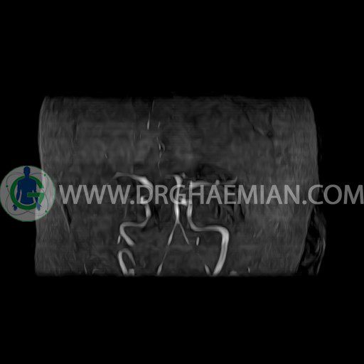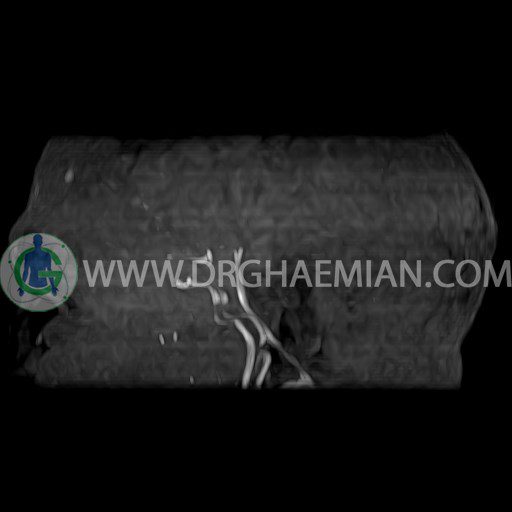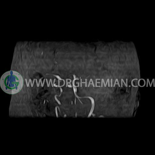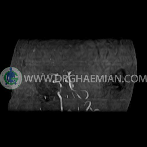 ام آر آنژیوگرافی با استفاده از آهنربایی قوی، امواج رادیویی و کامپیوتری هوشمند عروق خونی را ارزیابی کرده و به یافتن موارد غیرعادی کمک میکند. در این کیس تنگی مزمن مغز (شریان A1) بیمار دیده می شود.