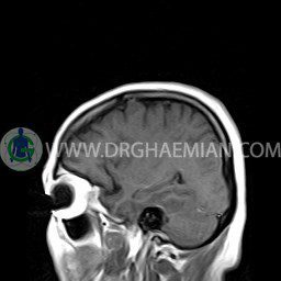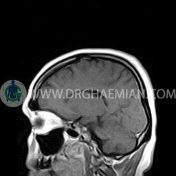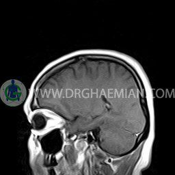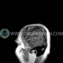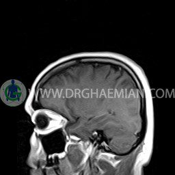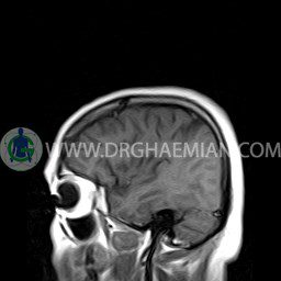 ام آر آی مغز یک روش تصویربرداری است که با استفاده آهنربا های قوی و امواج رادیویی تصاویری از مغز و بافت های عصبی پیرامونی آن ایجاد می کند. در این کیس آنژیوم عنکبوتی و سلای نسبتا خالی دیده می شود.