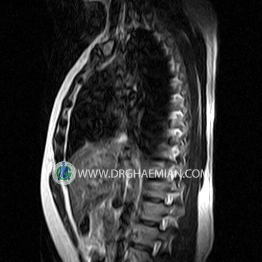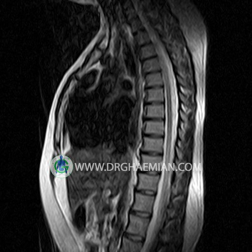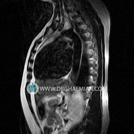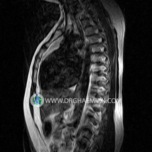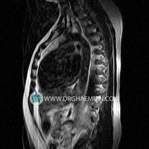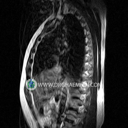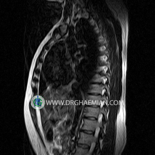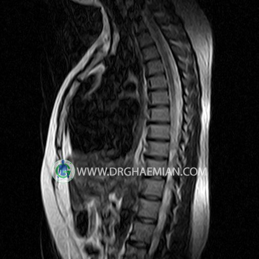پزشکان اغلب از تصویربرداری ام آر آی برای تشخیص و درمان عارضه های پزشکی که فقط با استفاده از اشعه ایکس یا میدان مغناطیسی و امواج رادیویی قابل مشاهده است، استفاده می کنند. دستگاه ام آر آی تصاویر دقیق از ساختار های داخلی بدن ایجاد می کند. در این کیس اسکولیوز توراسیک به همراه کاهش لوردوز گردنی، دیهیدراته و بیرون زدگی دیسک های C3/C4/C5/C6 مشاهده می شود.