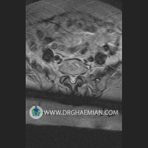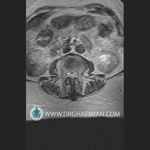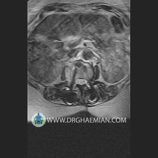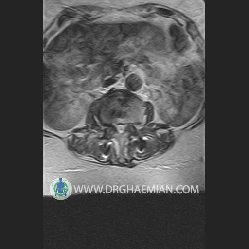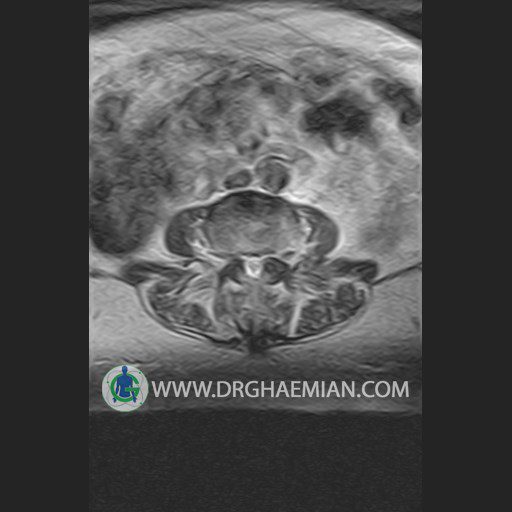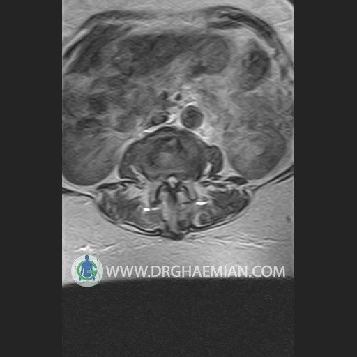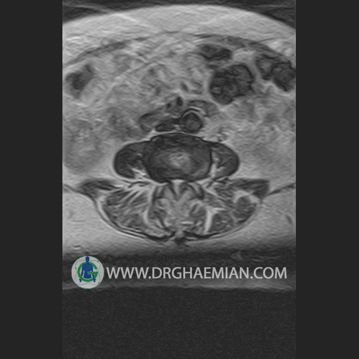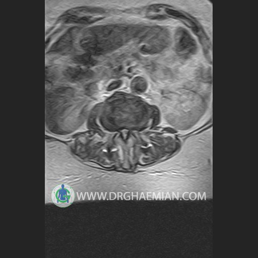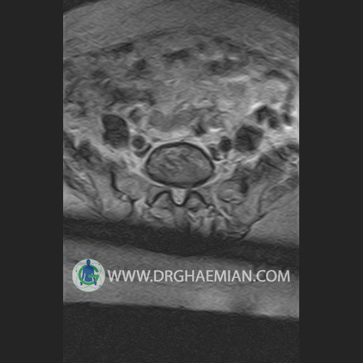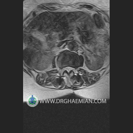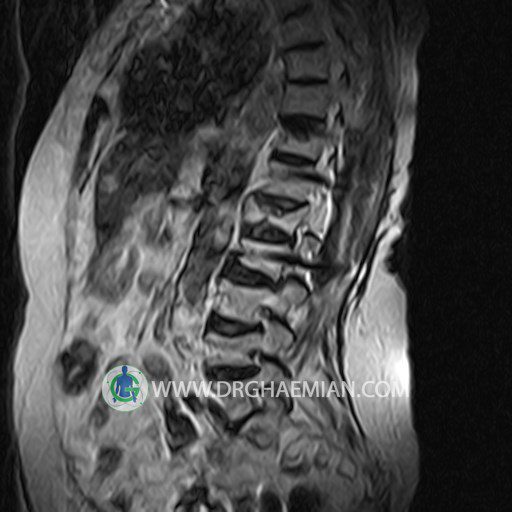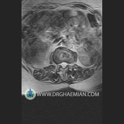 پزشکان اغلب از تصویربرداری ام آر آی برای تشخیص و درمان عارضه های پزشکی که فقط با استفاده از اشعه ایکس یا میدان مغناطیسی و امواج رادیویی قابل مشاهده است، استفاده می کنند. دستگاه ام آر آی تصاویر دقیق از ساختار های داخلی بدن ایجاد می کند. در این کیس اسکولیوز کمر، لامینکتومی مهره های T12,L1 و L2، شکستگی ها قدیمی در مهره های L4 ، L1 و L3، اسپوندیلوز، دیهیتراته و بیرون زده در مهره های L2/L3/L4/L5 و اسپوندیلوز بیاریک شدن، دیهیتراته و بیرون زدنگی در مهره های L5/S1 دیده می شود.