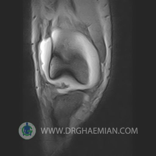 – Grade 2 signal change in P.H. of medial meniscus with partial tearing of posterior root &  meniscal extrusion