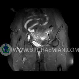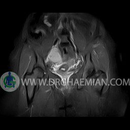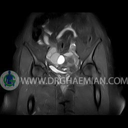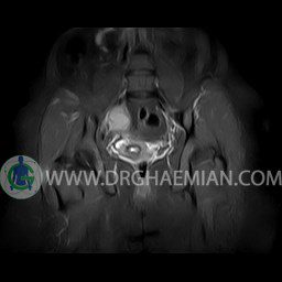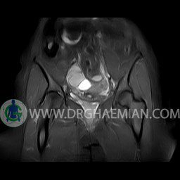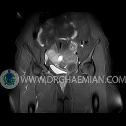 ام ار آی لگن یک روش تصویربرداری است که از طریق دستگاهی با آهنرباهایی قوی و امواج رادیویی از ناحیه بین استخوان های ران تصاویری می سازد. این قسمت از بدن را ناحیه لگنی می گویند. در این کیس اندومتریوما، هیدروسالپینکس سمت راست، میوم داخل دیواره و کیست ساده تخمدان راست مشاهده می شود.