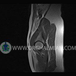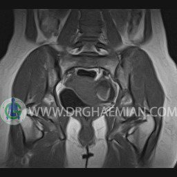The femoral heads are normally shaped and articulate normally with the acetabula they have normal bone marrow signal characteristics.