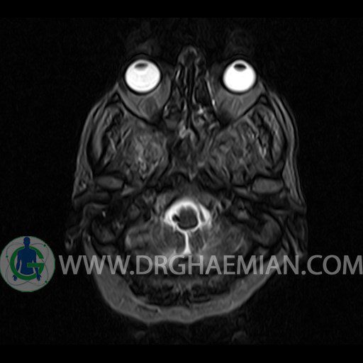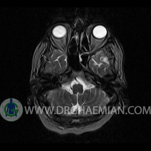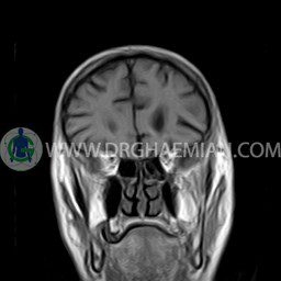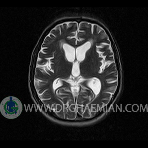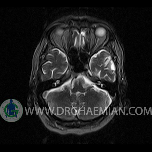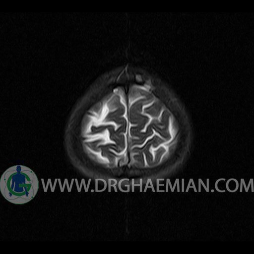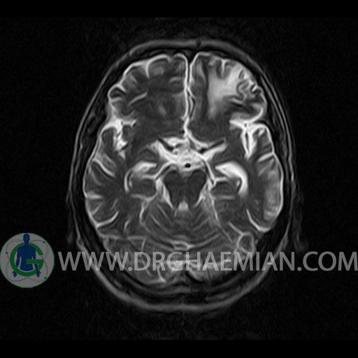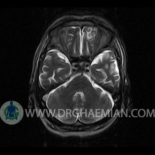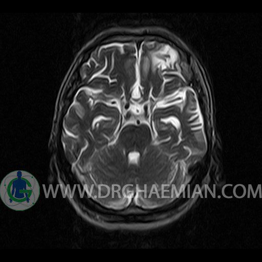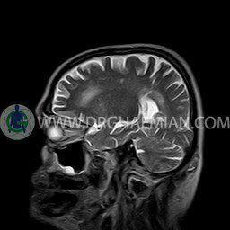 پزشکان اغلب از تصویربرداری ام آر آی برای تشخیص و درمان عارضه های پزشکی که فقط با استفاده از اشعه ایکس یا میدان مغناطیسی و امواج رادیویی قابل مشاهده است، استفاده می کنند. دستگاه ام آر آی تصاویر دقیق از ساختار های داخلی بدن ایجاد می کند. در این کیس انفارکتوس لاکونار در لوب جلویی راست و در هیپوکامپوس راست، آنسفالومالاسی کیستیک به همراه گلیوز در لوب جلویی چپ و افزایش ضخامت مخاطی در سینوس ماگزیلاری راست مشاهده می شود.