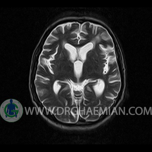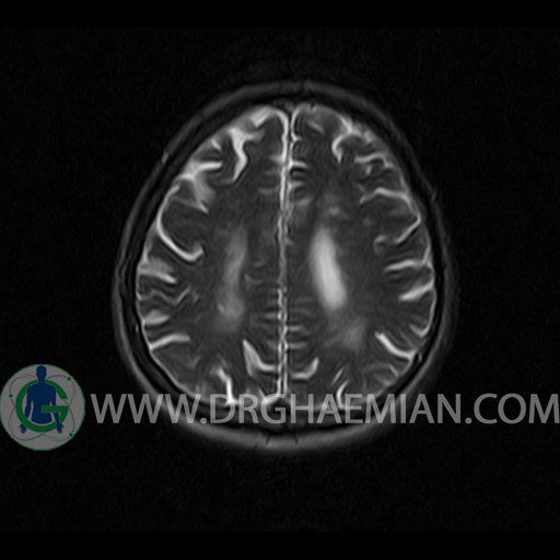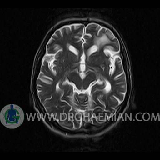 – Confluent high signal foci in periventricular & subcortical W.M. (deep W.M. ischemia- fazekas 2)