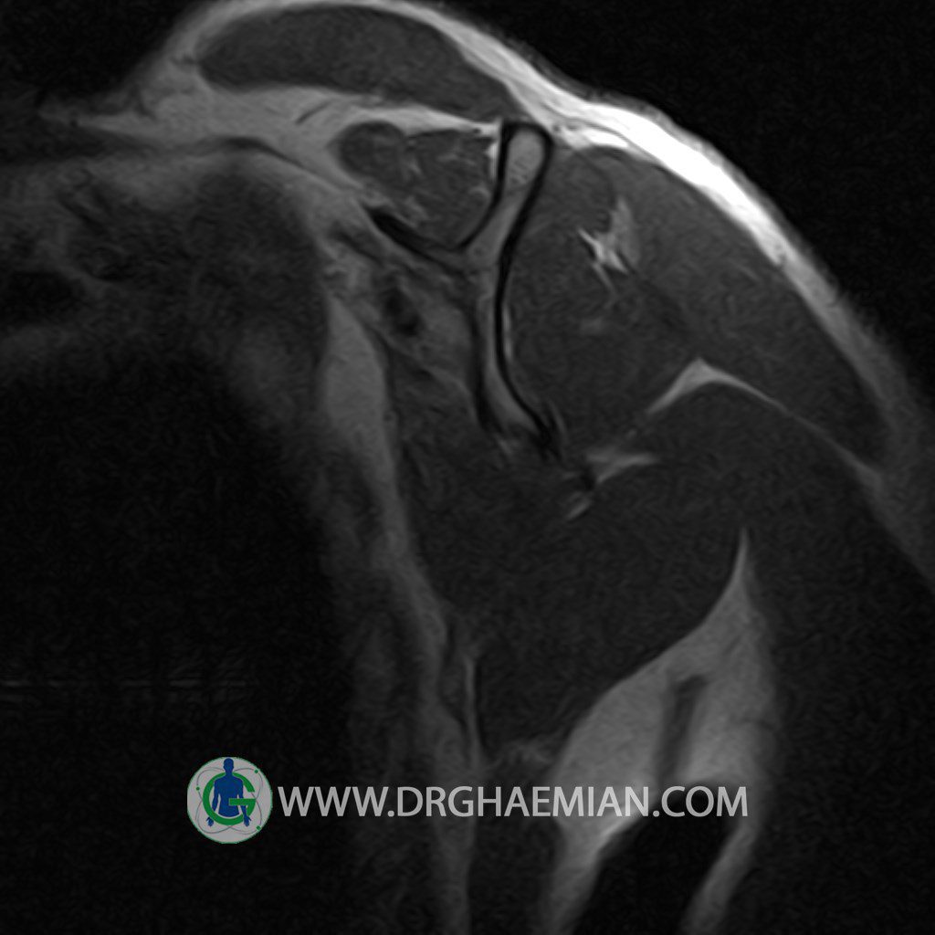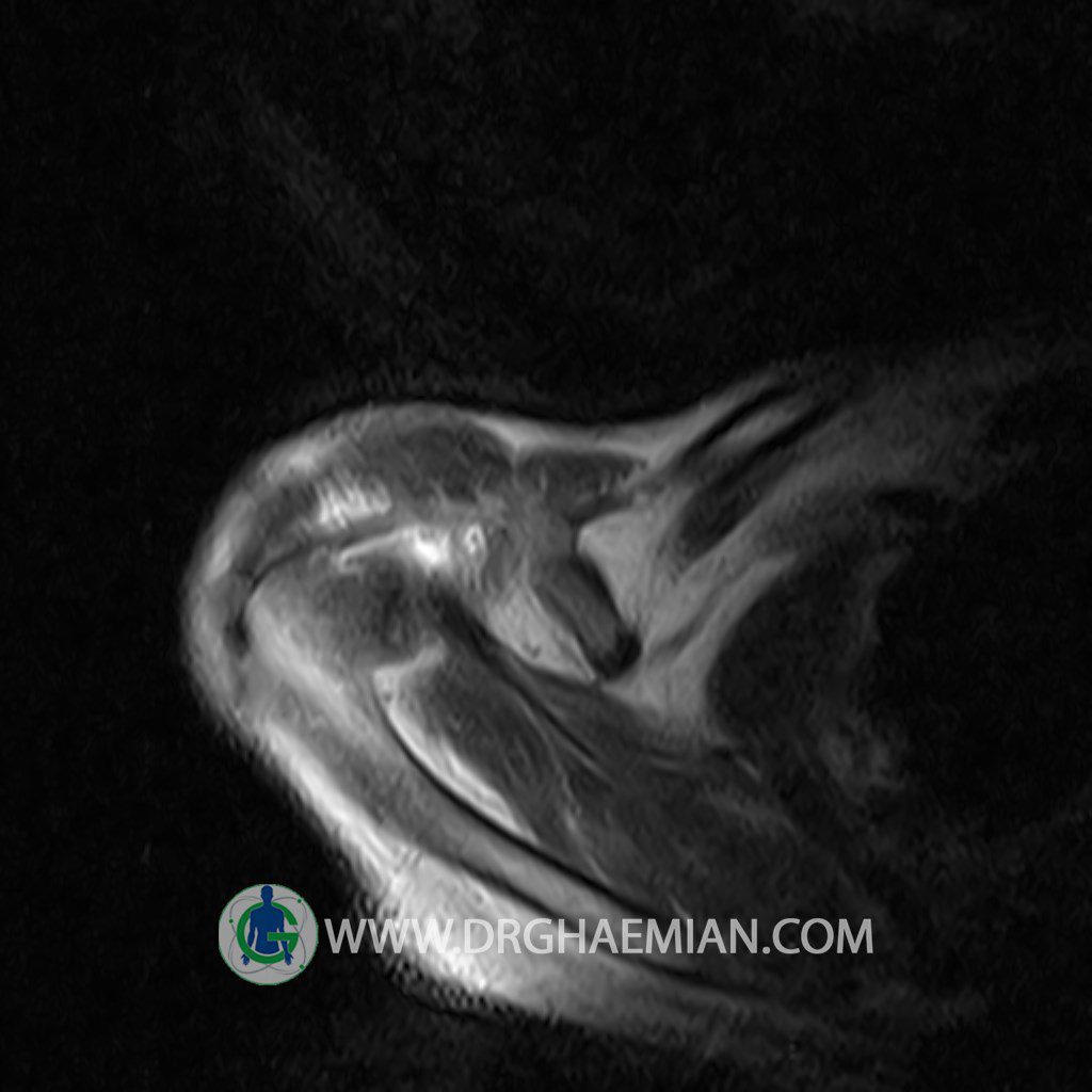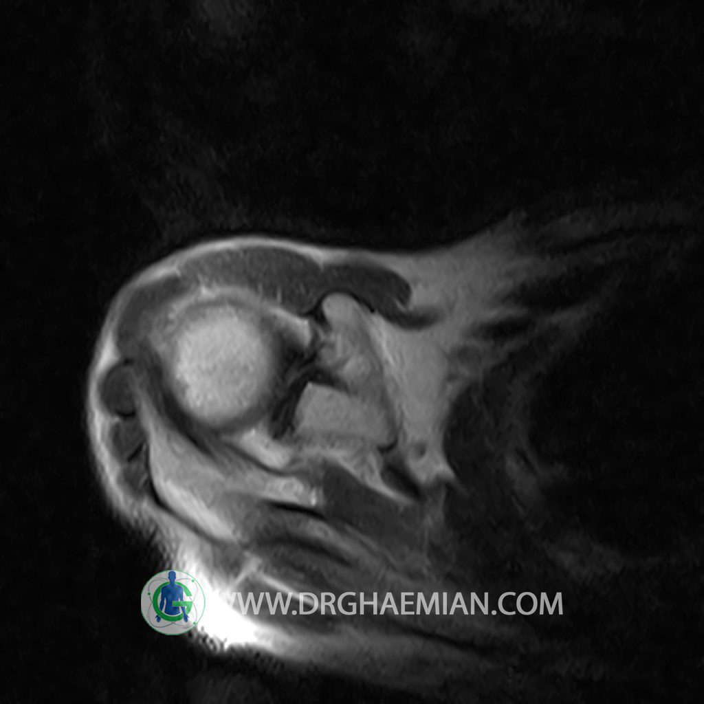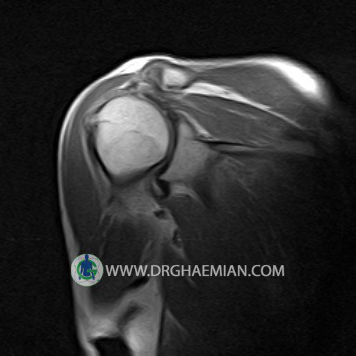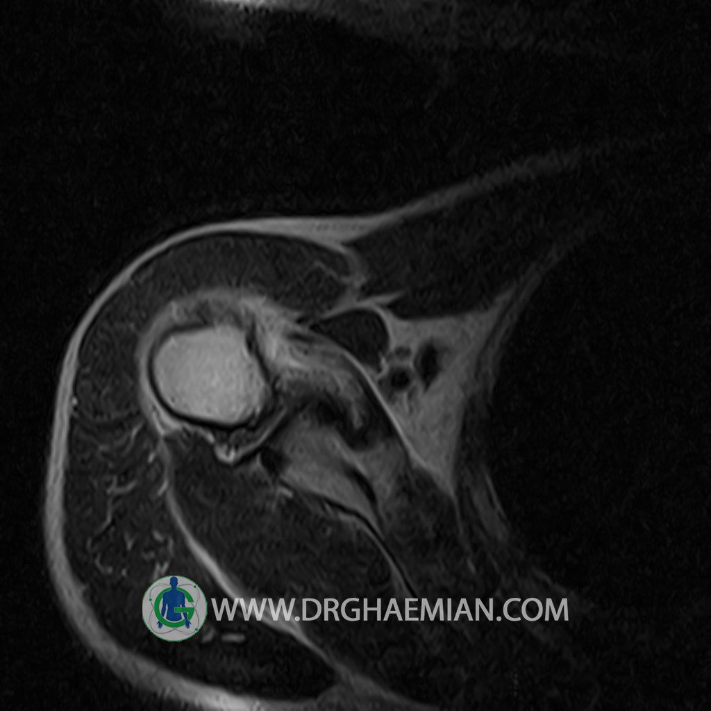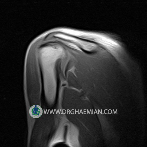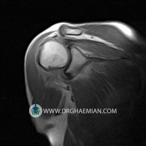 پزشکان اغلب از تصویربرداری ام آر آی برای تشخیص و درمان عارضه های پزشکی که فقط با استفاده از اشعه ایکس یا میدان مغناطیسی و امواج رادیویی قابل مشاهده است، استفاده می کنند. دستگاه ام آر آی تصاویر دقیق از ساختار های داخلی بدن ایجاد می کند. در این کیس بورسیت ساب دلتوئید شانه، پارگی و پیچ خوردگی تاندون و افیوژن مفصل شانه دیده می شود.