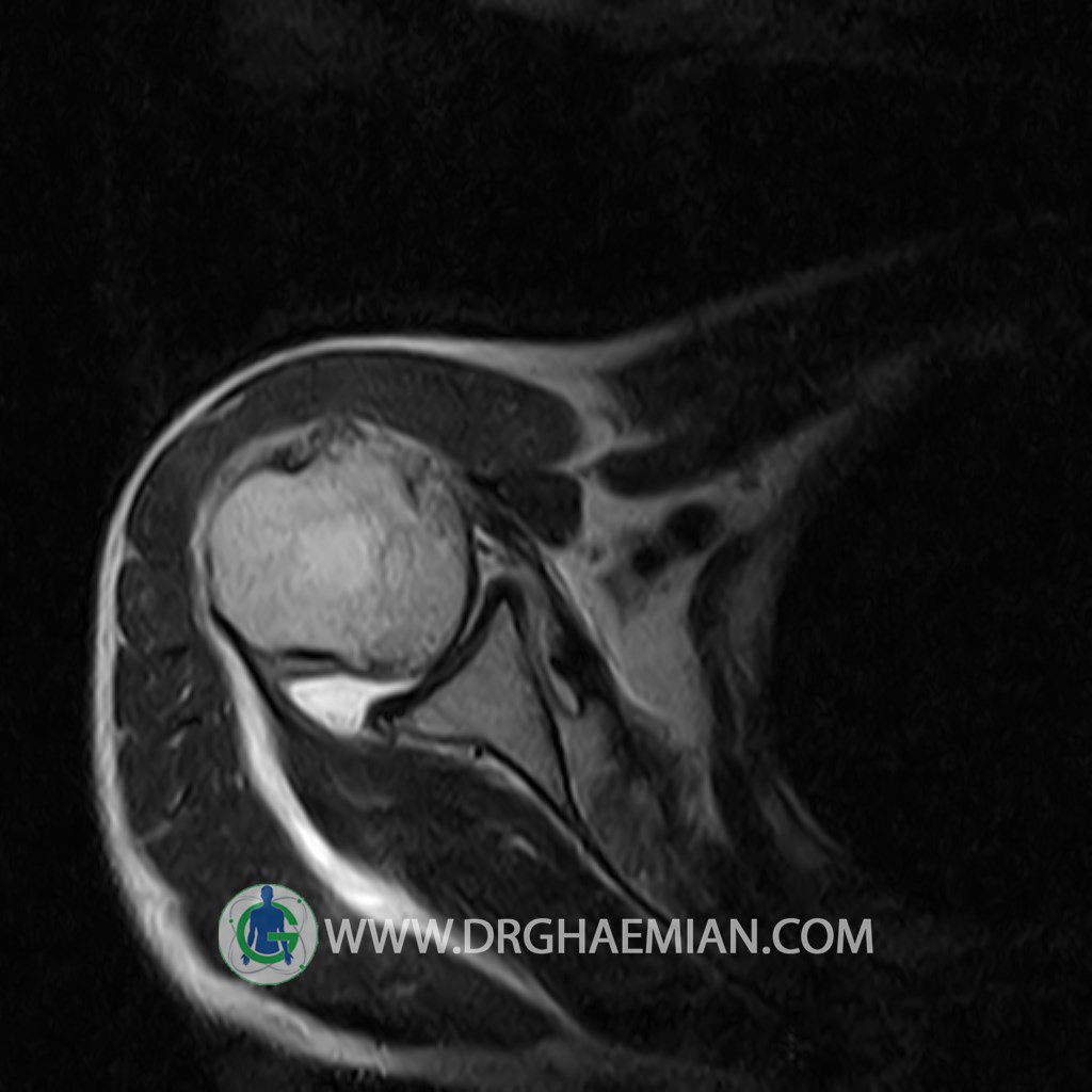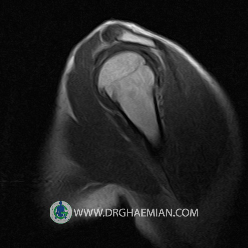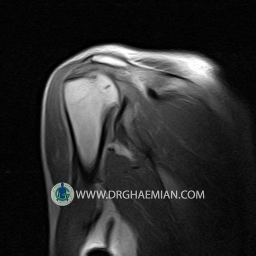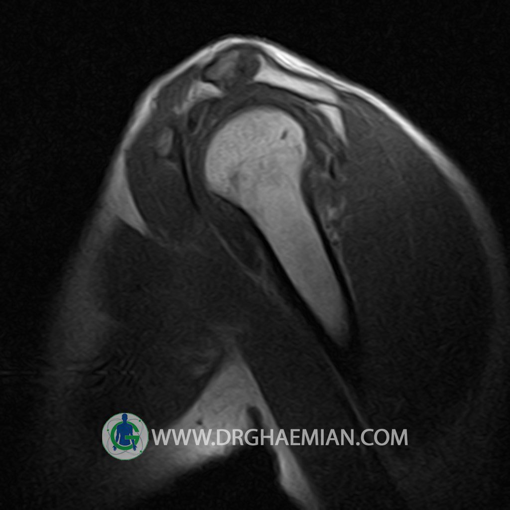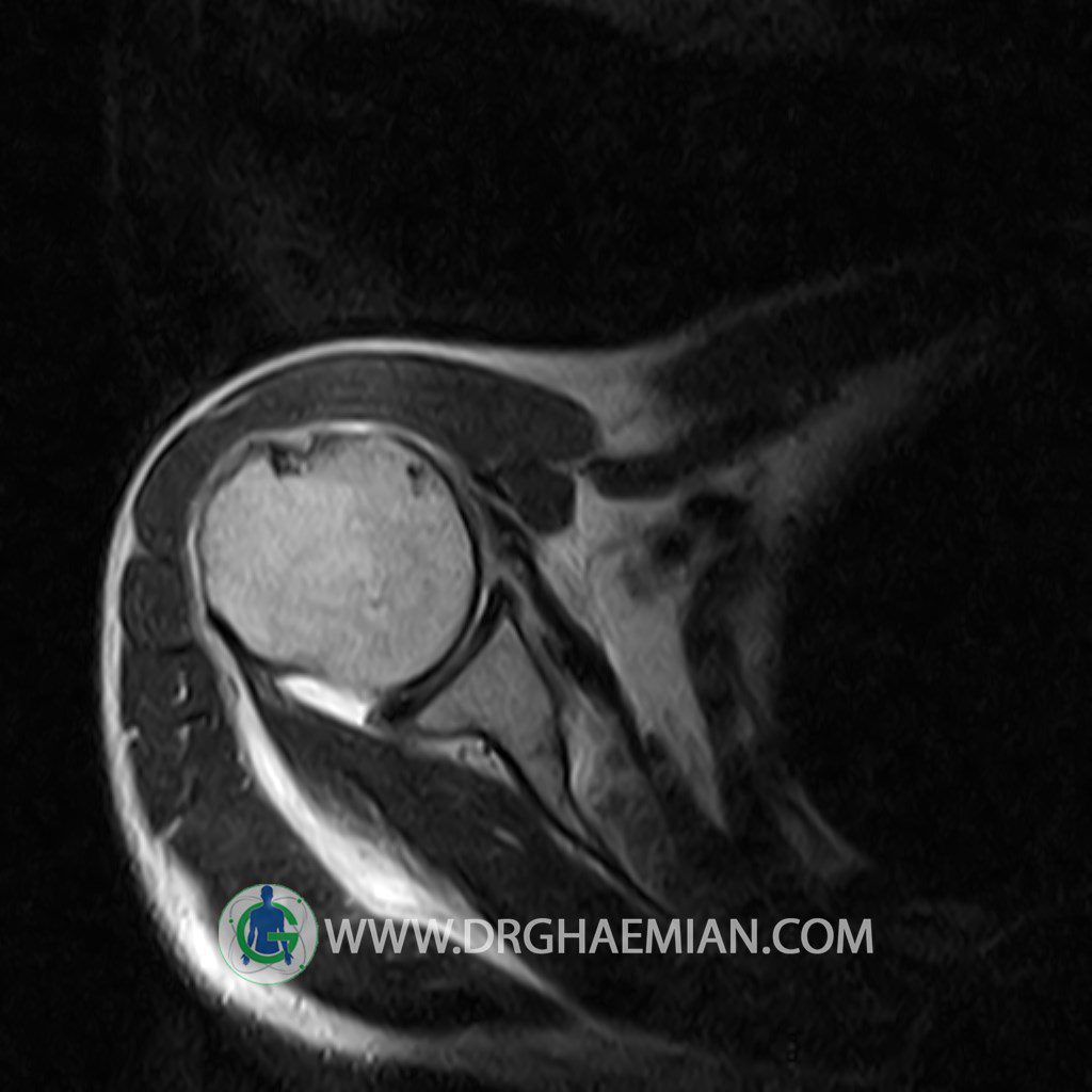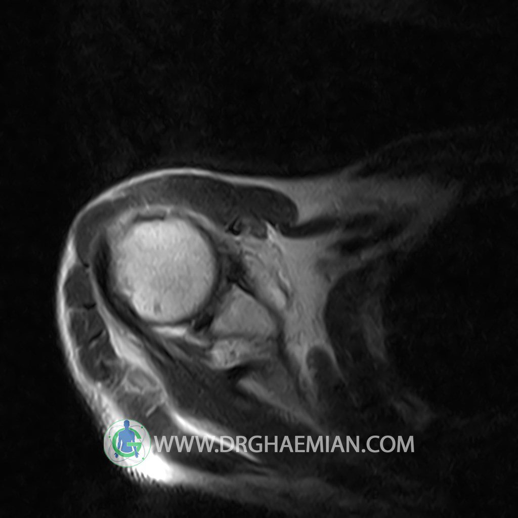 پزشکان اغلب از تصویربرداری ام آر آی برای تشخیص و درمان عارضه های پزشکی که فقط با استفاده از اشعه ایکس یا میدان مغناطیسی و امواج رادیویی قابل مشاهده است، استفاده می کنند. دستگاه ام آر آی تصاویر دقیق از ساختار های داخلی بدن ایجاد می کند. در این کیس بورسیت ساب دلتوئید شانه، پارگی و پیچ خوردگی تاندون و افیوژن مفصل شانه دیده می شود.