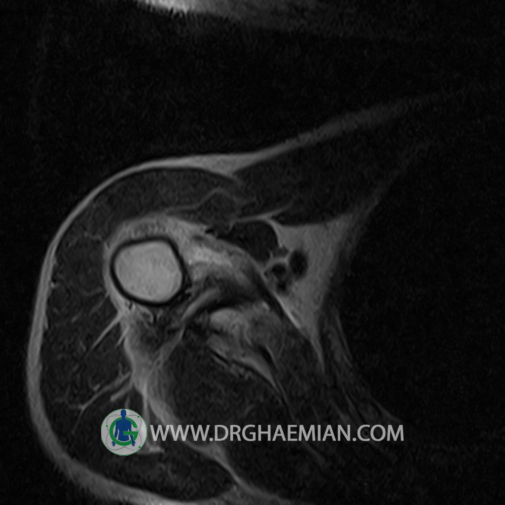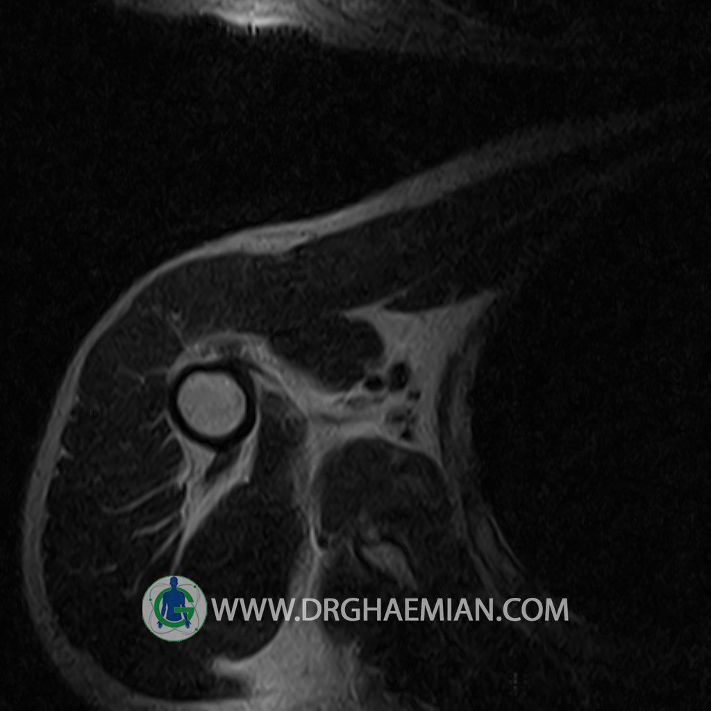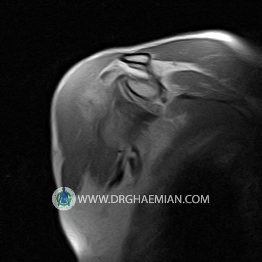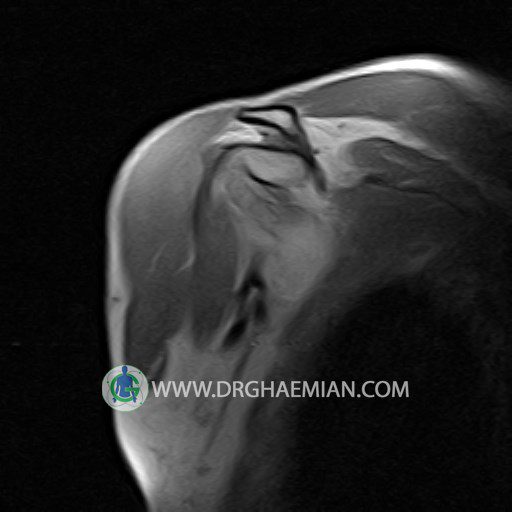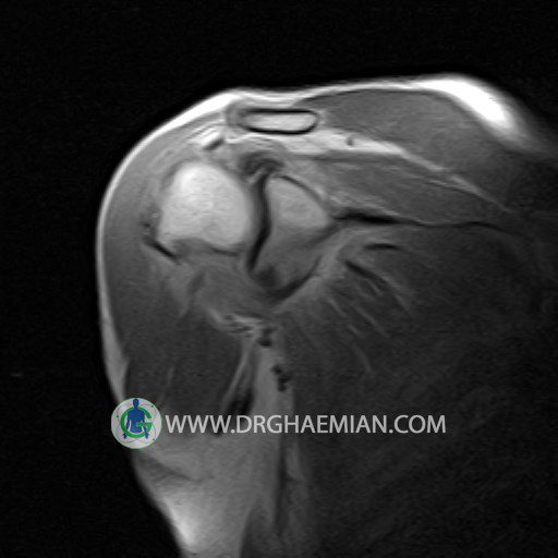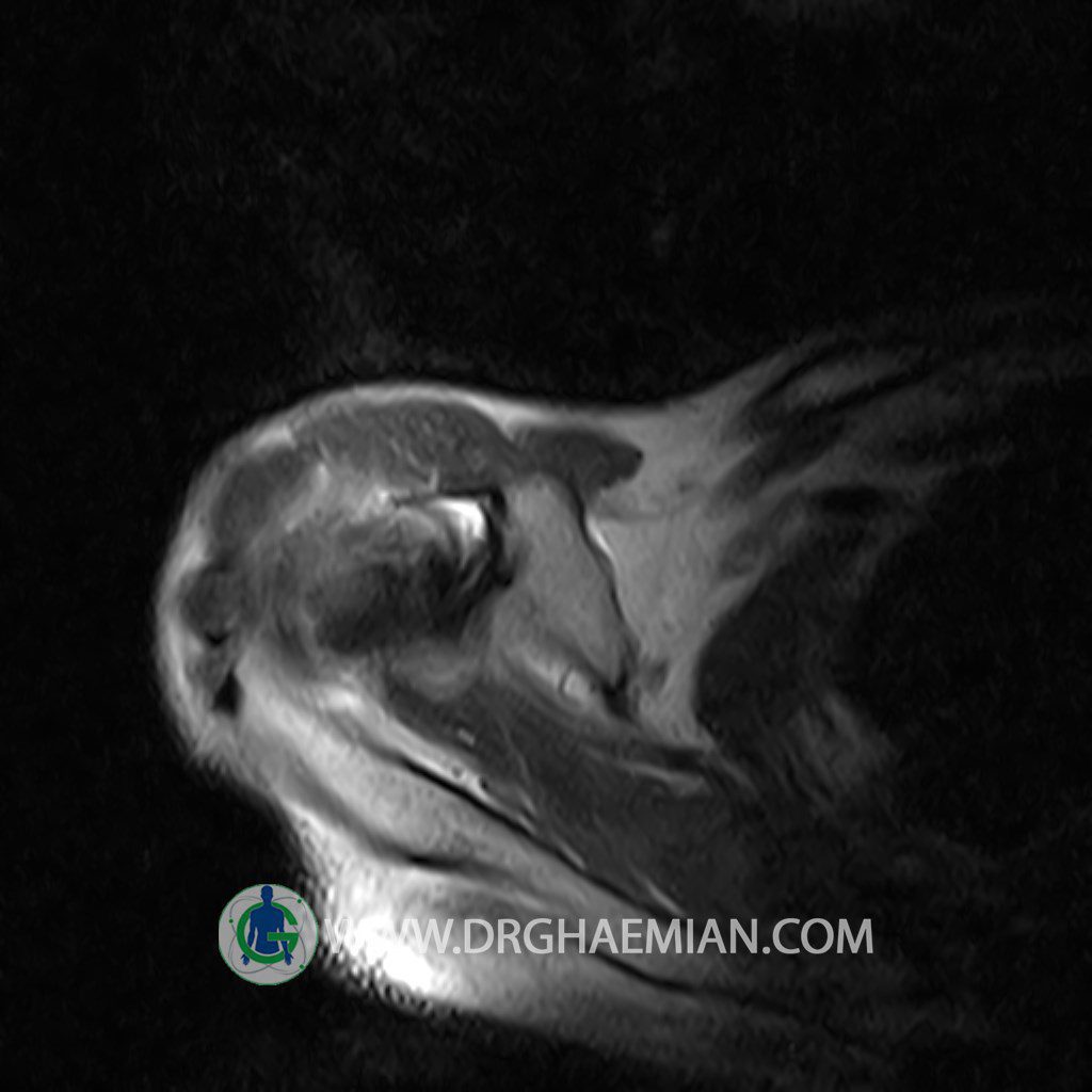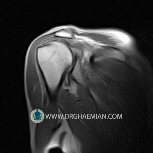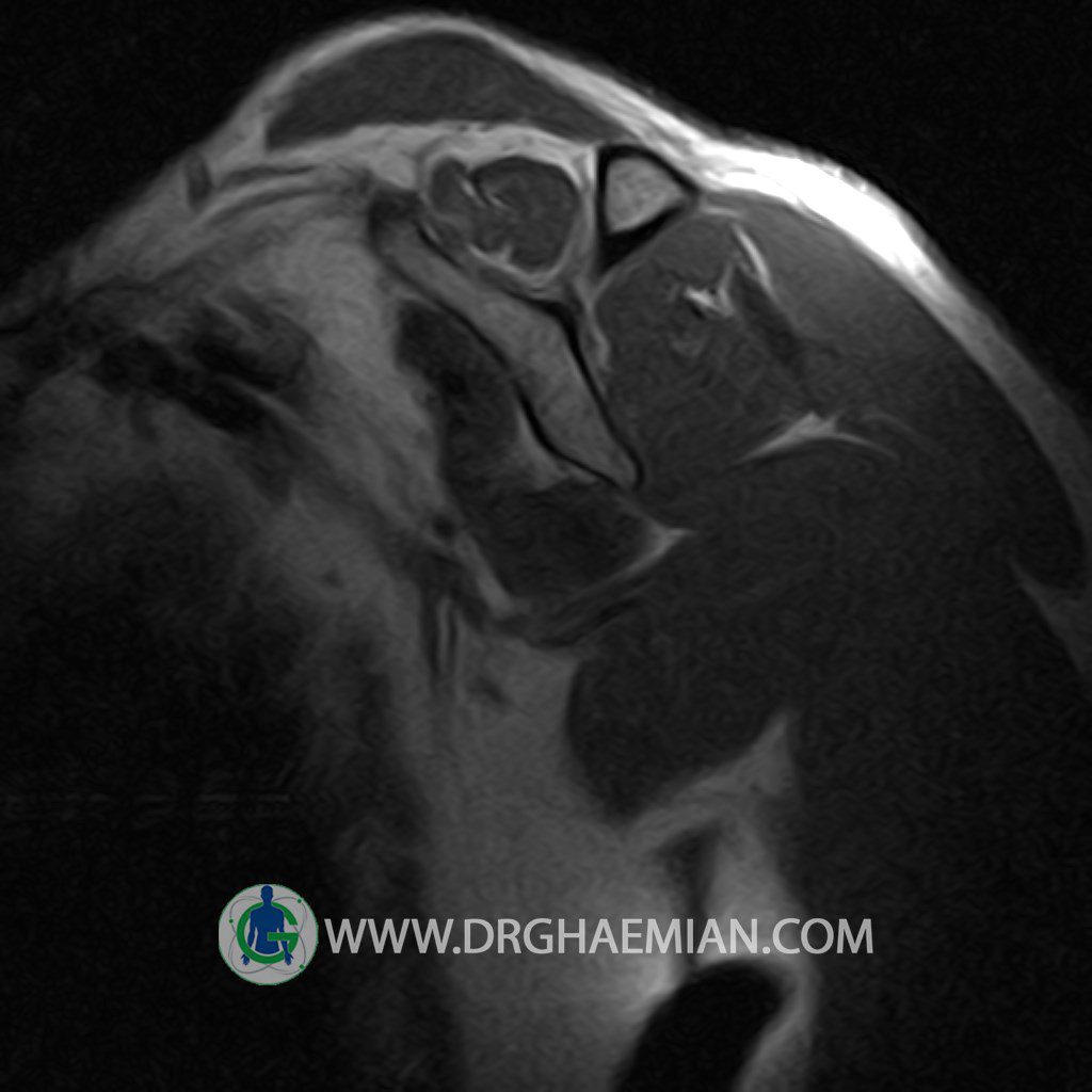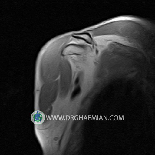 پزشکان اغلب از تصویربرداری ام آر آی برای تشخیص و درمان عارضه های پزشکی که فقط با استفاده از اشعه ایکس یا میدان مغناطیسی و امواج رادیویی قابل مشاهده است، استفاده می کنند. دستگاه ام آر آی تصاویر دقیق از ساختار های داخلی بدن ایجاد می کند. در این کیس بورسیت ساب دلتوئید شانه، پارگی و پیچ خوردگی تاندون و افیوژن مفصل شانه دیده می شود.