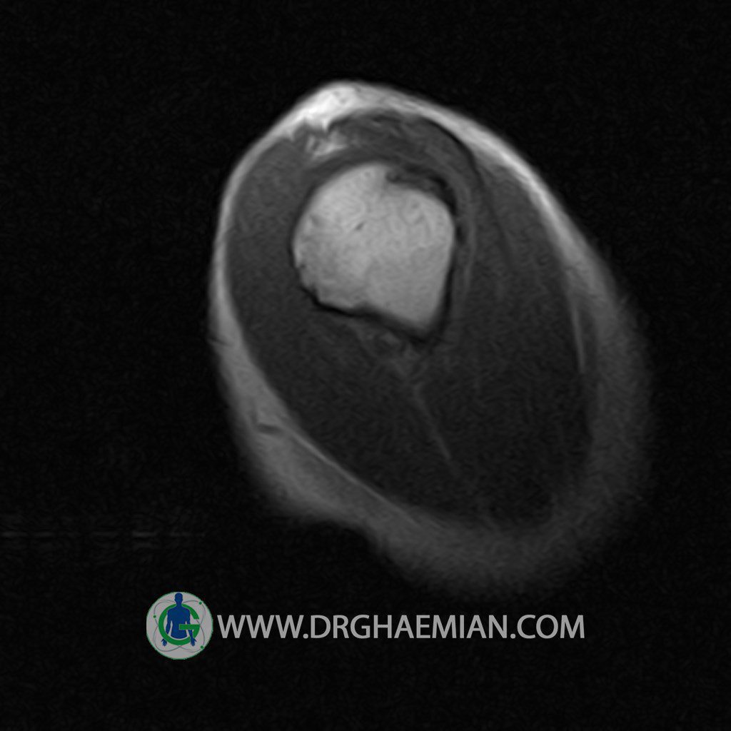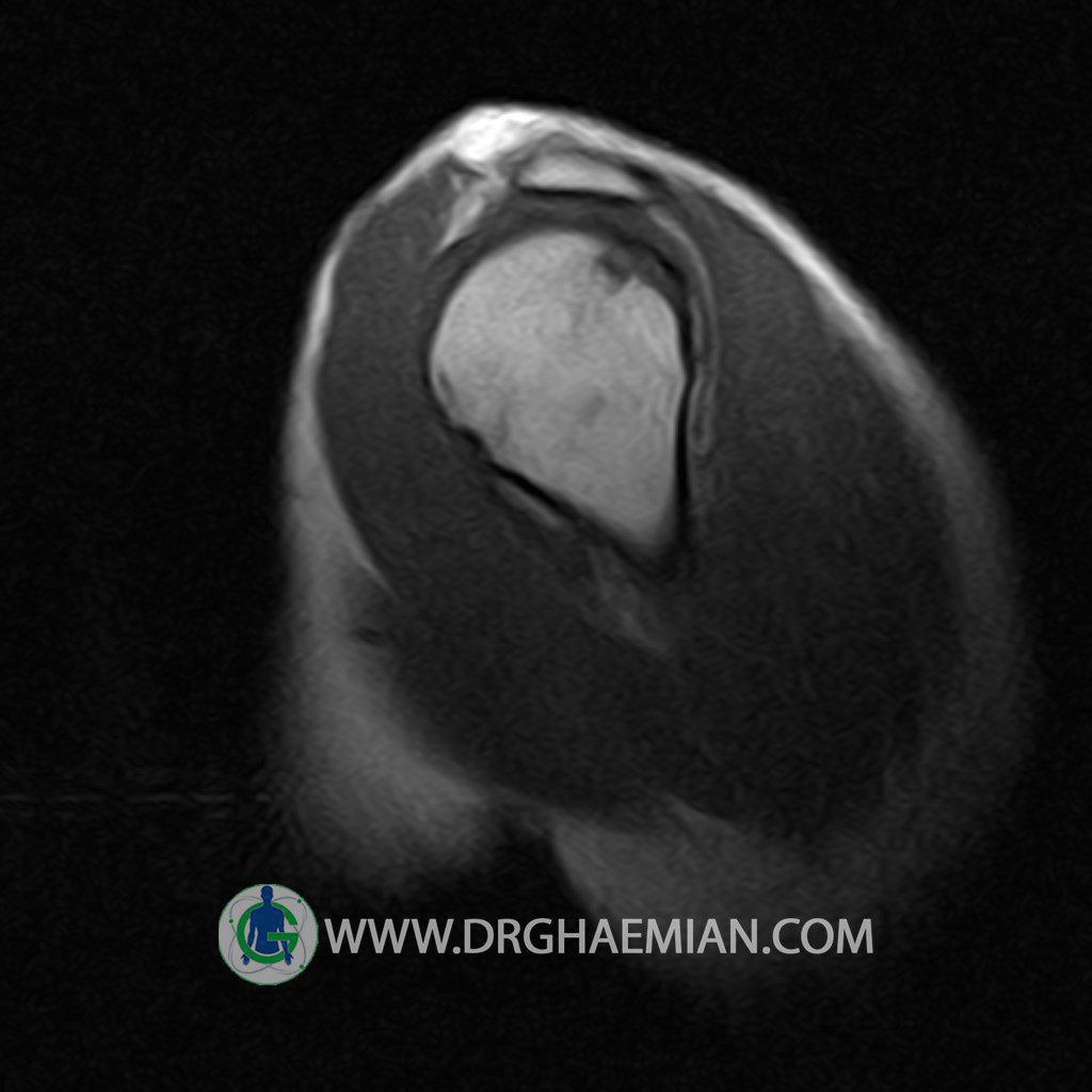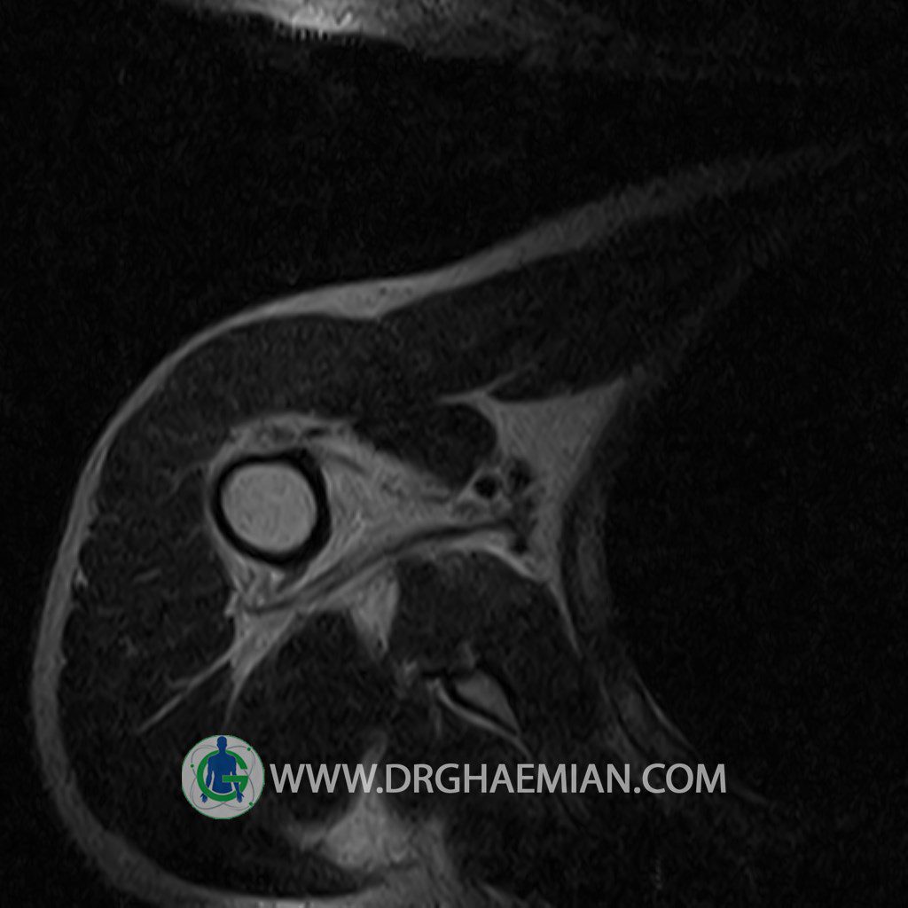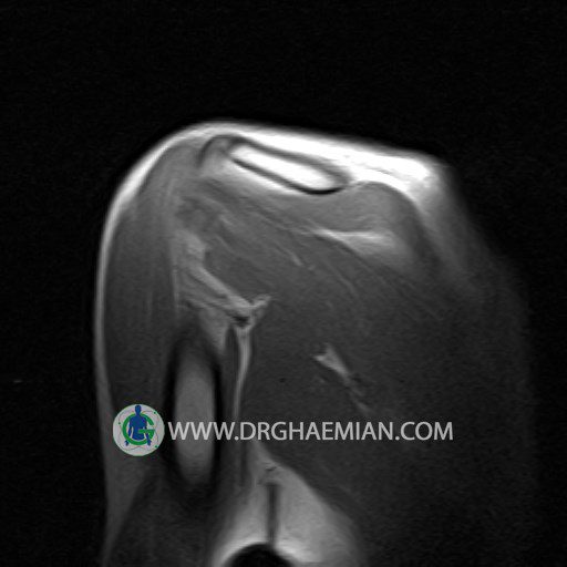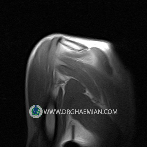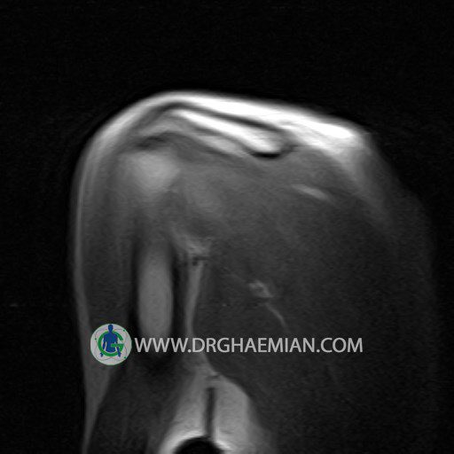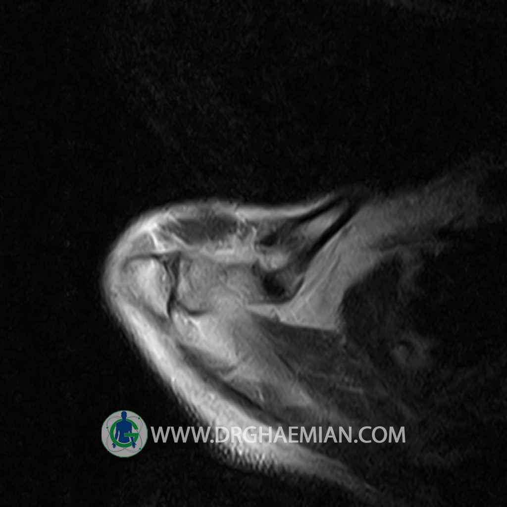 پزشکان اغلب از تصویربرداری ام آر آی برای تشخیص و درمان عارضه های پزشکی که فقط با استفاده از اشعه ایکس یا میدان مغناطیسی و امواج رادیویی قابل مشاهده است، استفاده می کنند. دستگاه ام آر آی تصاویر دقیق از ساختار های داخلی بدن ایجاد می کند. در این کیس بورسیت ساب دلتوئید شانه، پارگی و پیچ خوردگی تاندون و افیوژن مفصل شانه دیده می شود.