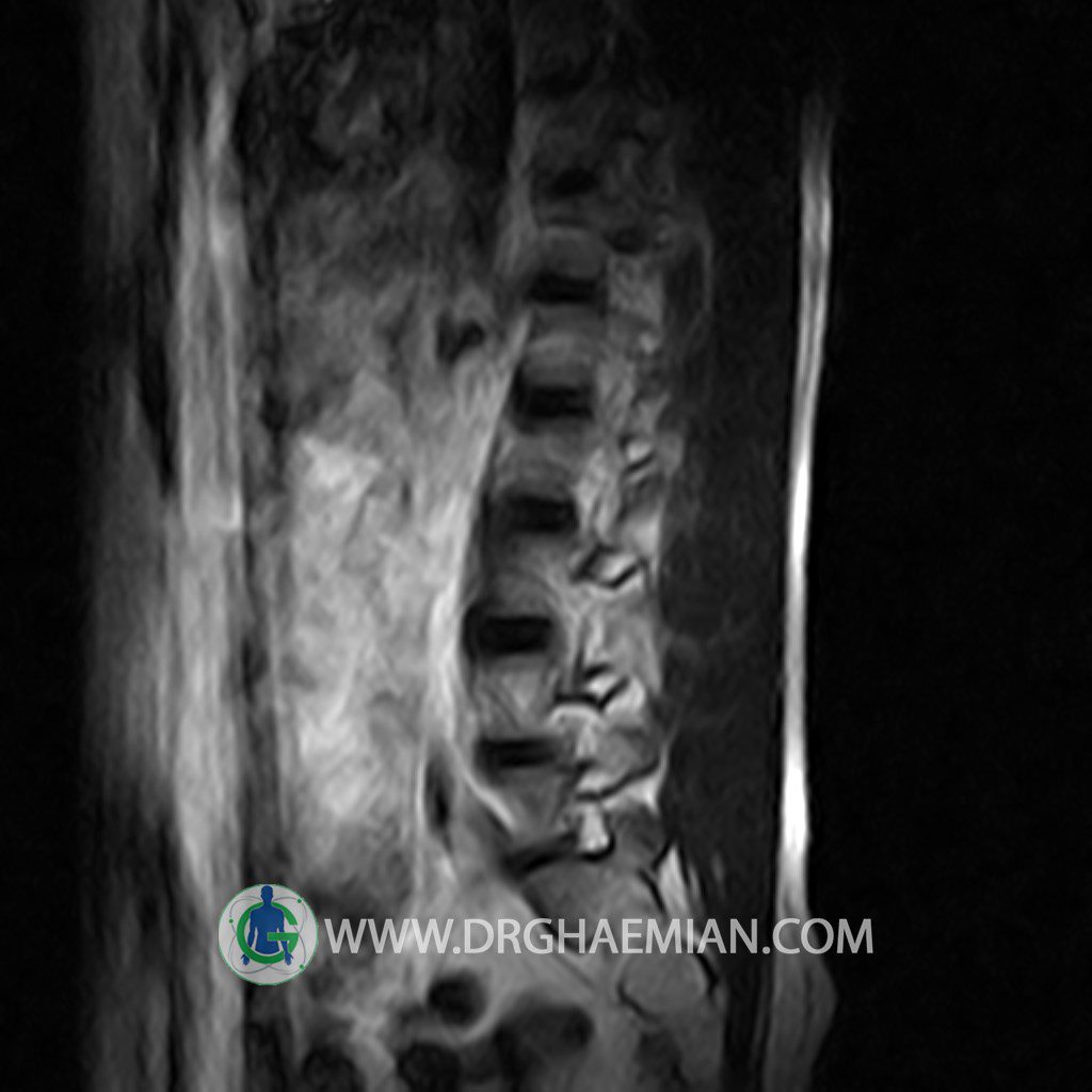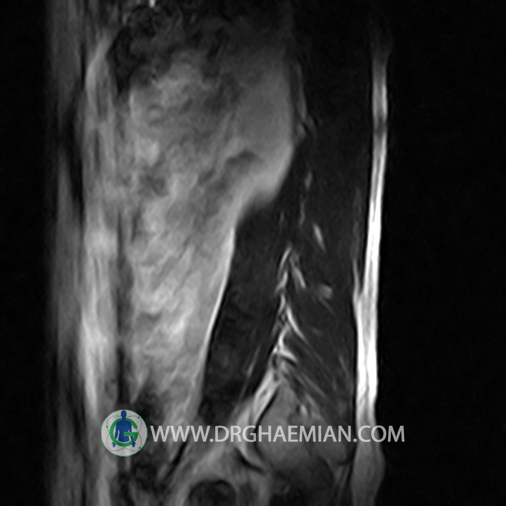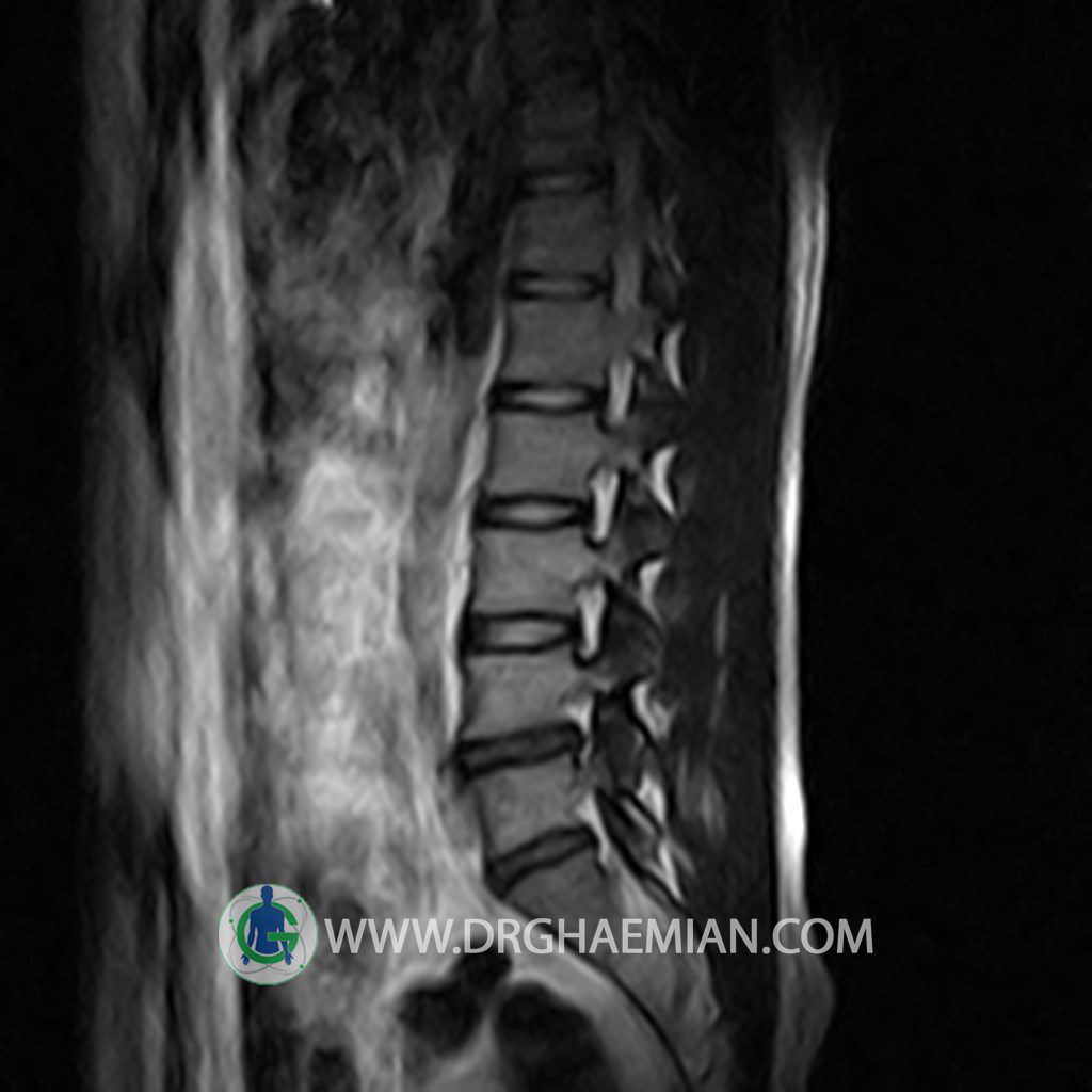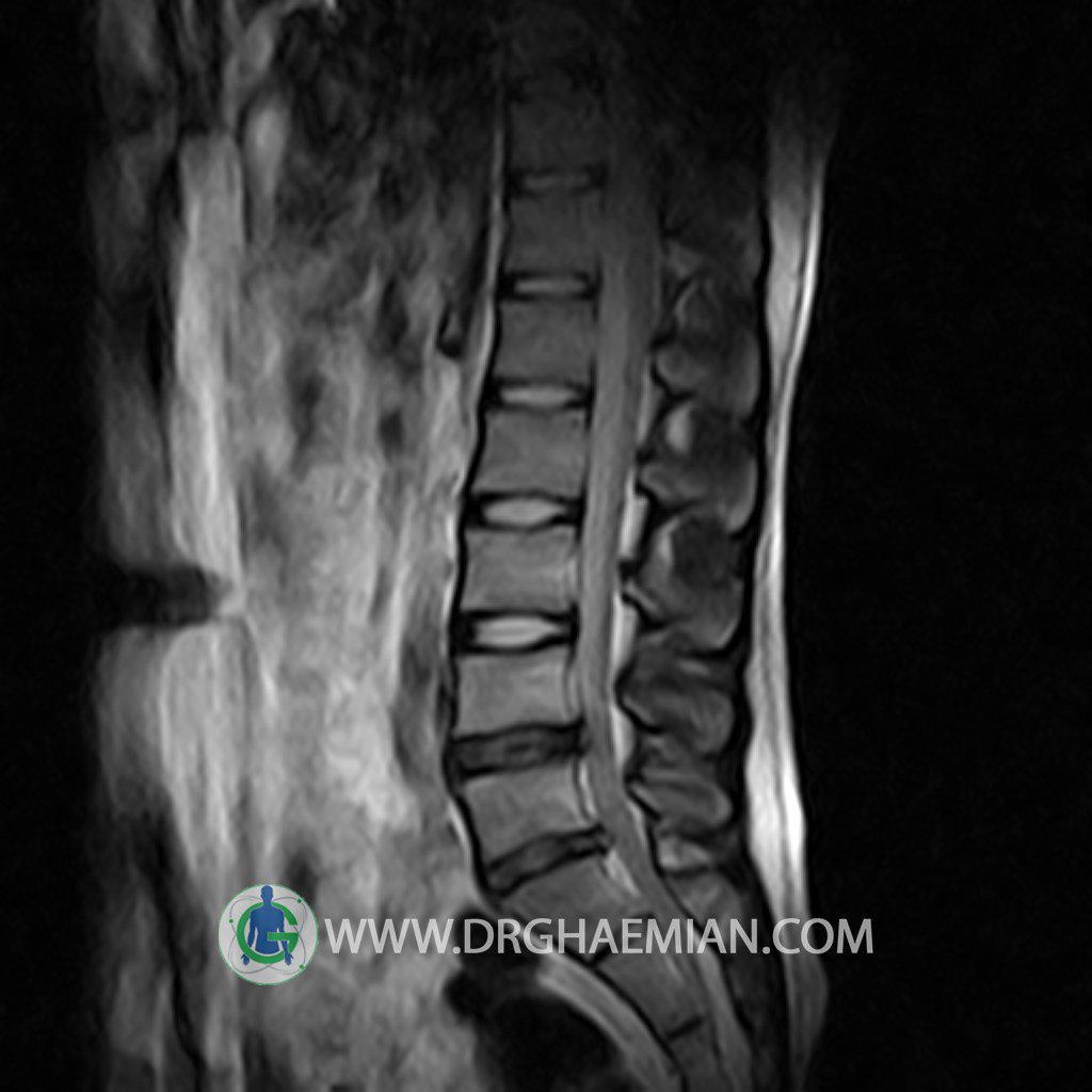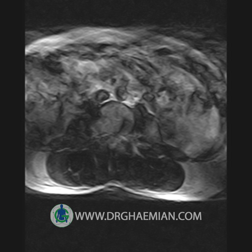 ام آر آی کمر از طریق انرژی آهنربا های قوی تصاویری از قسمت پایین ستون فقرات ( گودی کمر) ایجاد می کند. این نوع تصویربرداری از اشعه ایکس استفاده نمی کند. در این کیس تنگی دیسک کمر در دیسک L5/S1 و دهیدراتاسیون در دیسک L4/L5 دیده می شود.