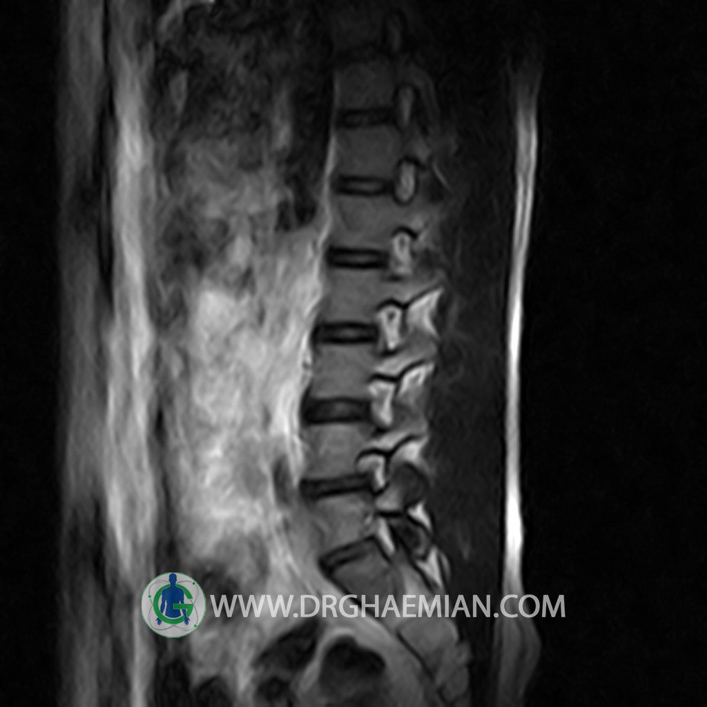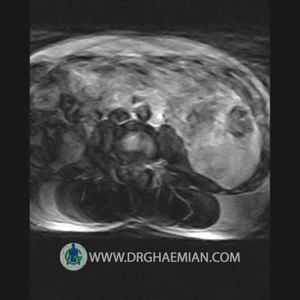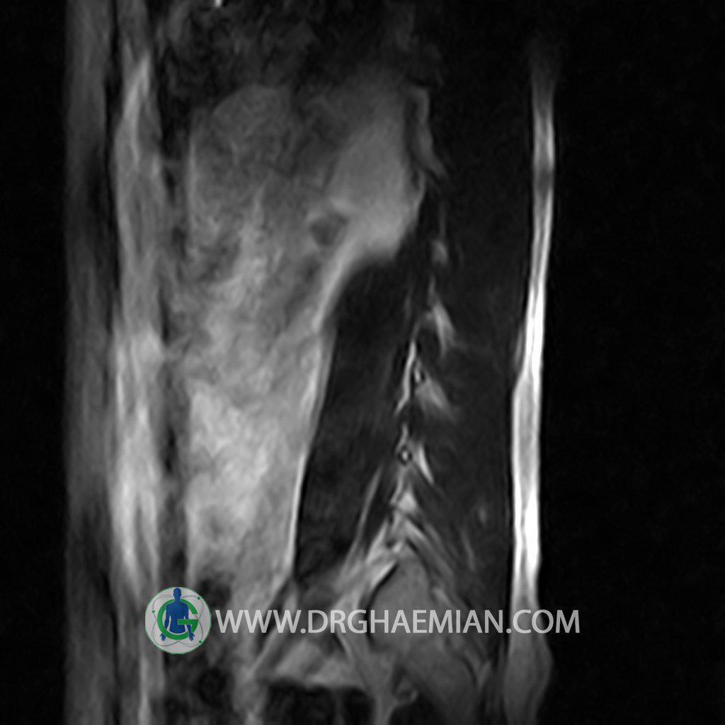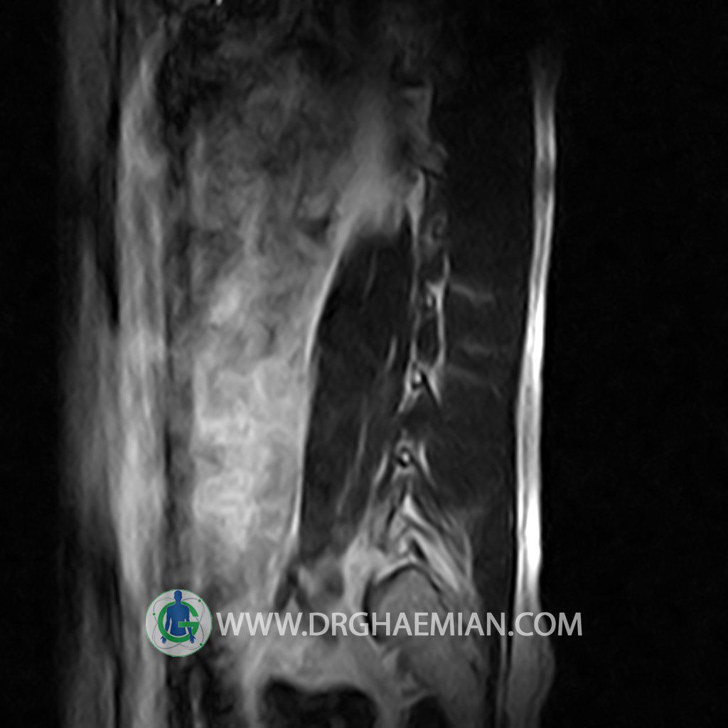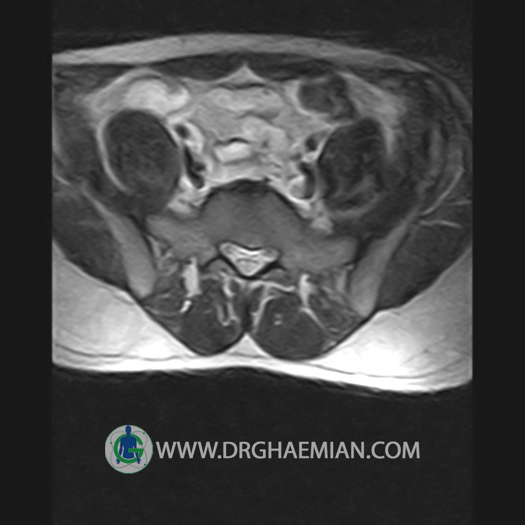 ام آر آی کمر از طریق انرژی آهنربا های قوی تصاویری از قسمت پایین ستون فقرات ( گودی کمر) ایجاد می کند. این نوع تصویربرداری از اشعه ایکس استفاده نمی کند. در این کیس تنگی دیسک کمر در دیسک L5/S1 و دهیدراتاسیون در دیسک L4/L5 دیده می شود.