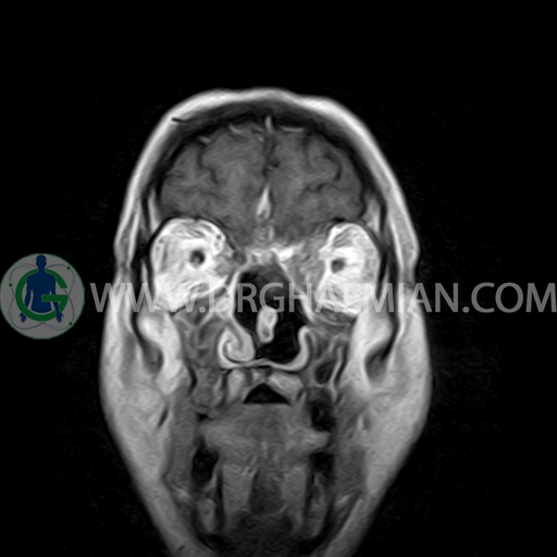 ام آر آی صورت و سینوس با استفاده از آهرنباها و امواج رادیویی تصاویری از اوربیت ها، ساختاری های صورت، عضلات و بافت های اطراف آن ایجاد می کند. در این کیس توده سینوس جلویی، سلای نسبتا خالی و ضخیم شدن مخاطی دیده می شود.
