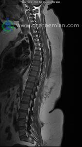 ام آر آی کمر از طریق انرژی آهنربا های قوی تصاویری از قسمت پایین ستون فقرات ( گودی کمر) ایجاد می کند. در این کیس بیمار با تومور گانگلیون نوروم…. دیده میشود