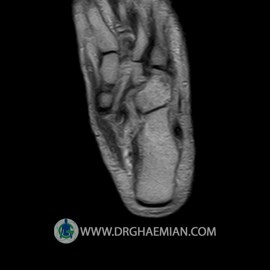 پزشکان اغلب از تصویربرداری ام آر آی برای تشخیص و درمان عارضه های پزشکی که فقط با استفاده از اشعه ایکس یا میدان مغناطیسی و امواج رادیویی قابل مشاهده است، استفاده می کنند. دستگاه ام آر آی تصاویر دقیق از ساختار های داخلی بدن ایجاد می کند. در این کیس زائده خوش خیم مچ پا، التهاب در اطراف زانو، پارگی در رباط، التهاب در اطرف مچ دیده می شود.