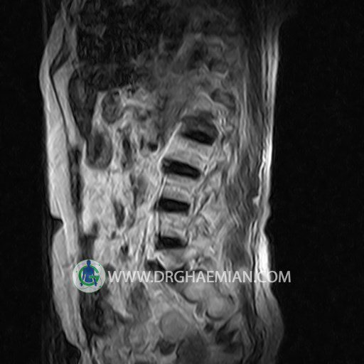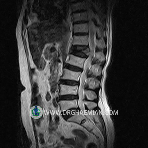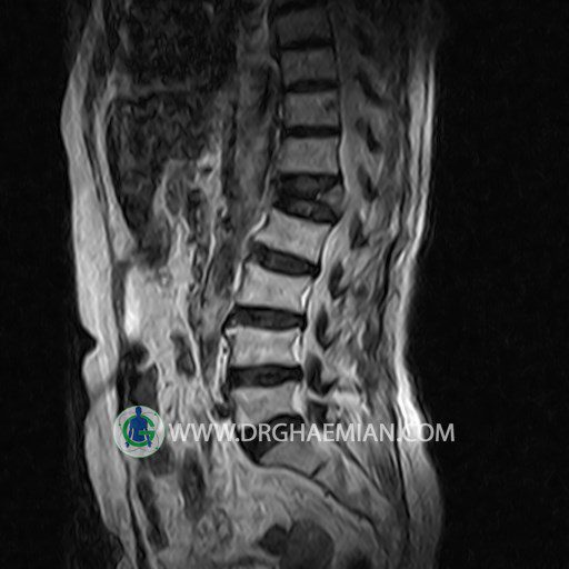 پزشکان اغلب از تصویربرداری ام آر آی برای تشخیص و درمان عارضه های پزشکی که فقط با استفاده از اشعه ایکس یا میدان مغناطیسی و امواج رادیویی قابل مشاهده است، استفاده می کنند. دستگاه ام آر آی تصاویر دقیق از ساختار های داخلی بدن ایجاد می کند. در این کیس شکستگی کمپرشن کمر در مهره L1، باریک شدن، دیهیدراته و بیرون زدگی در مهره های L2/L3/L4/L5، دیهتدارته و بیرون زدنگی در مهره L5/S1 و کیست کورتیکال در بالای کلیه چپ و کیستی ساده در ادنکس چپ دیده می شود.