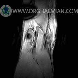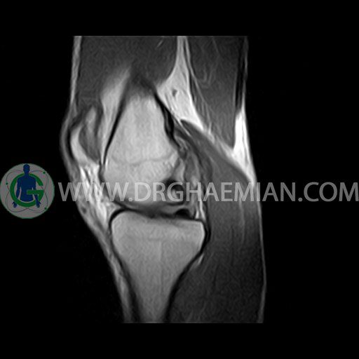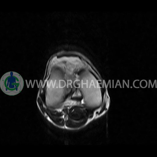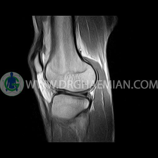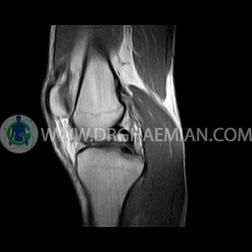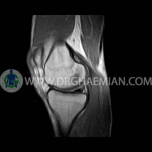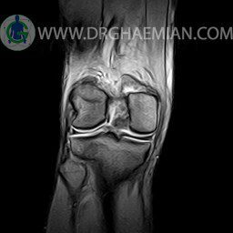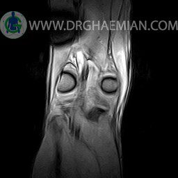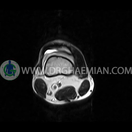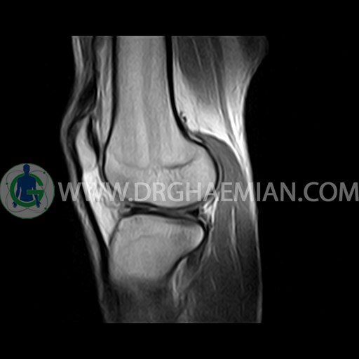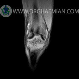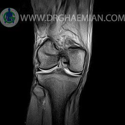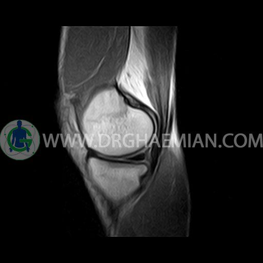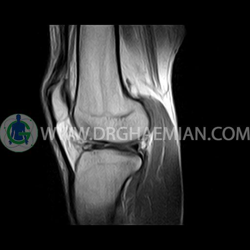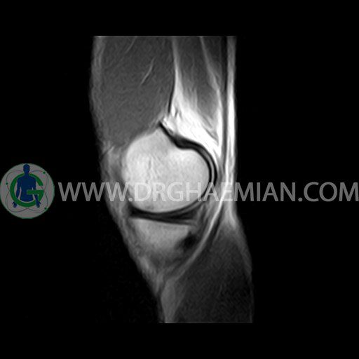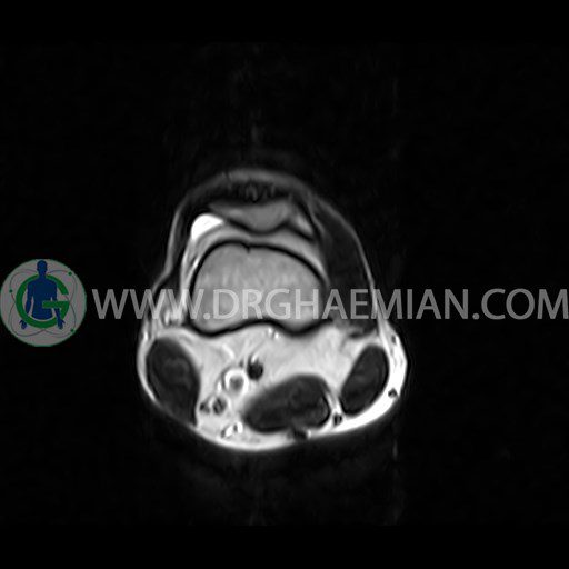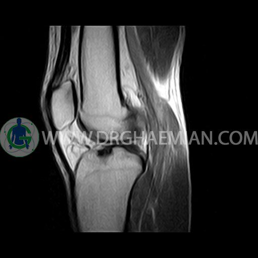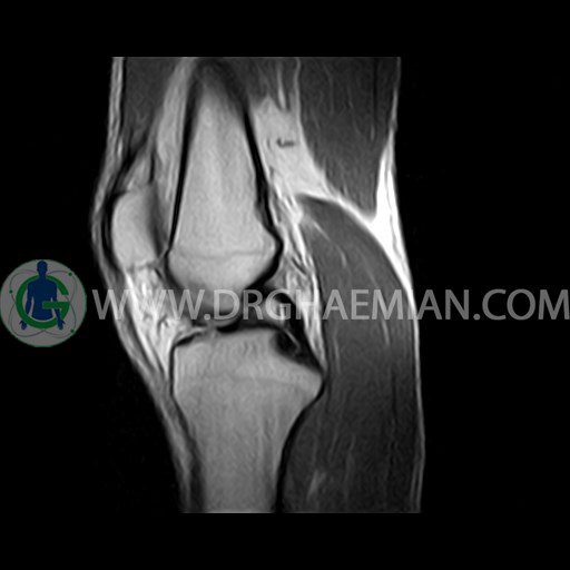 ام آر آی زانو با استفاده از آهنرباهای قوی تصاویری از مفصل، عضلات و بافت های زانو ایجاد می کند. این نوع تصویربرداری از تشعشعات استفاده نمی کند. در این کیس ضایعه استئوکندرال زانو و افیوژن ملایم همراه با تورم نسج نرم اطراف زانو دیده می شود.