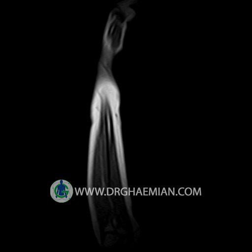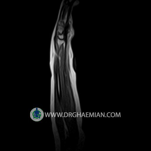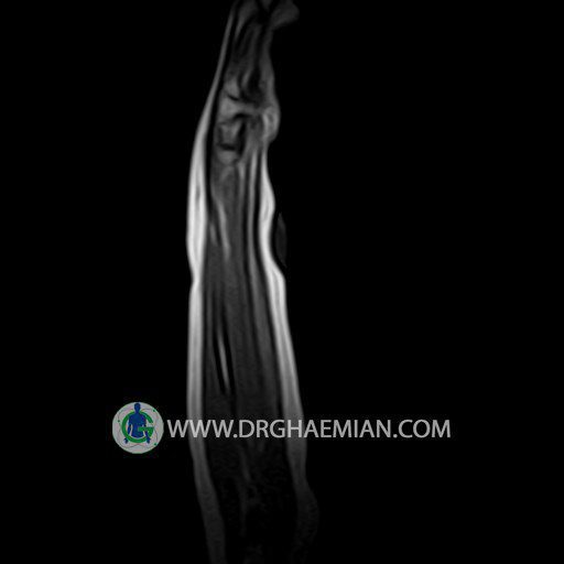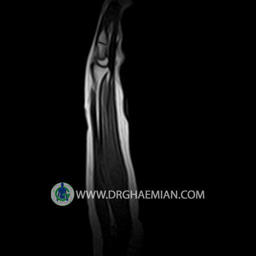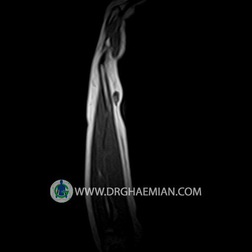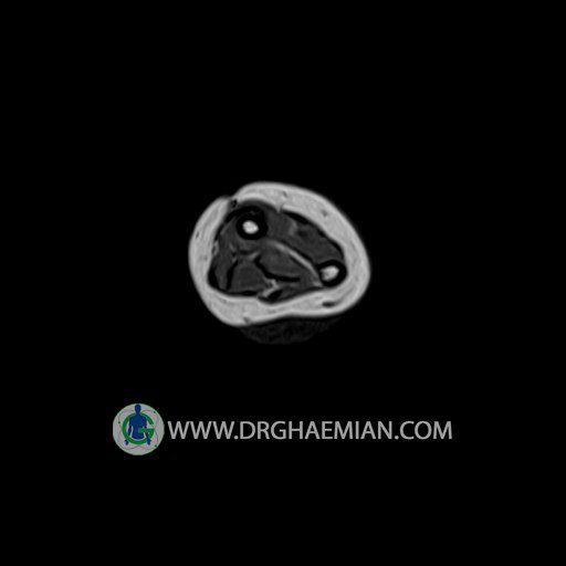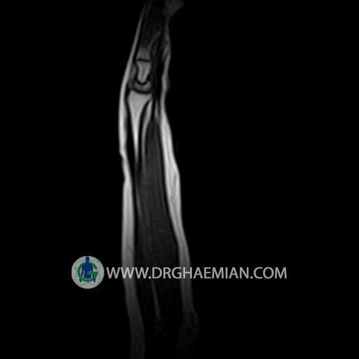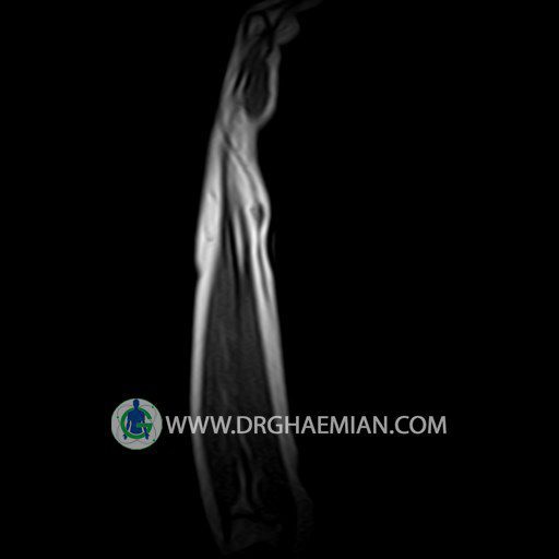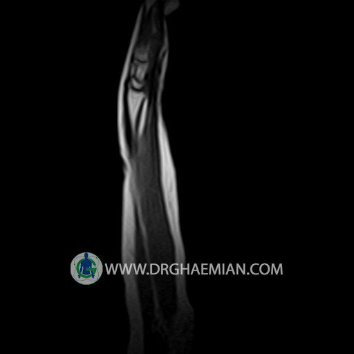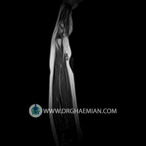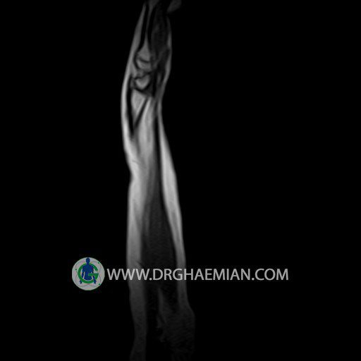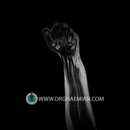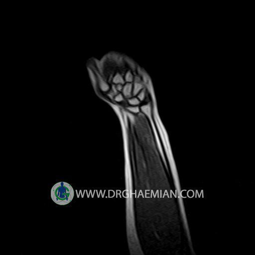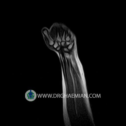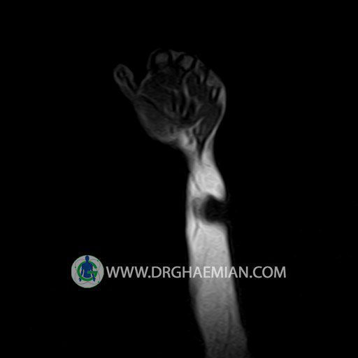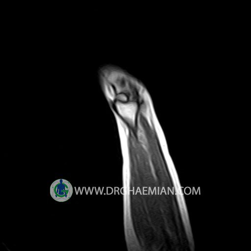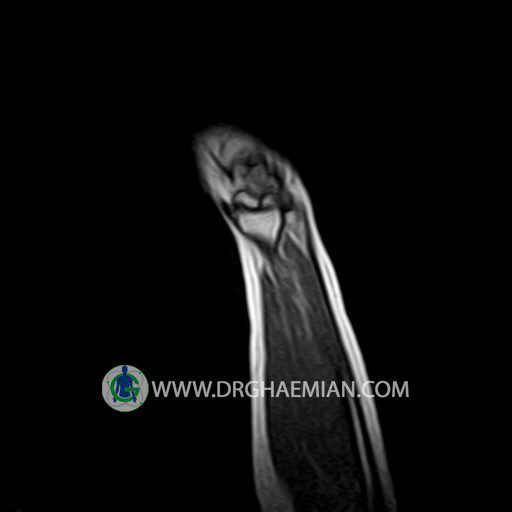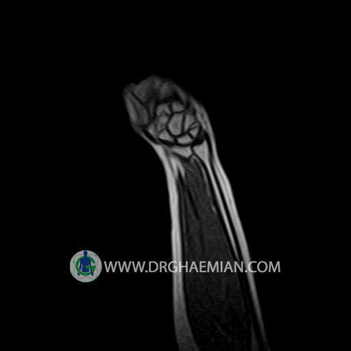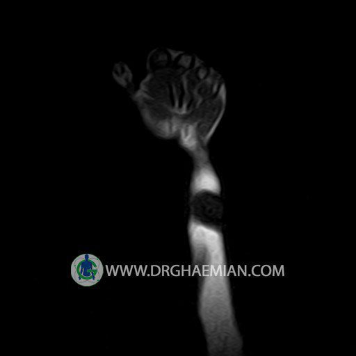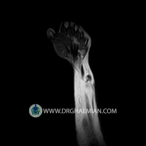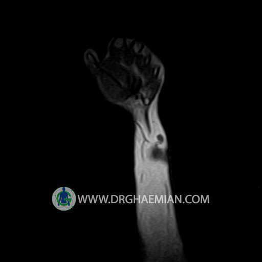 پزشکان اغلب از تصویربرداری ام آر آی برای تشخیص و درمان عارضه های پزشکی که فقط با استفاده از اشعه ایکس یا میدان مغناطیسی و امواج رادیویی قابل مشاهده است، استفاده می کنند. دستگاه ام آر آی تصاویر دقیق از ساختار های داخلی بدن ایجاد می کند. در این کیس توده ایی همانند فیبروم ساعد، تومور سلول غول پیکر یا همانژیوم به ابعاد mm 10 x 15 x 18 دیده می شود.