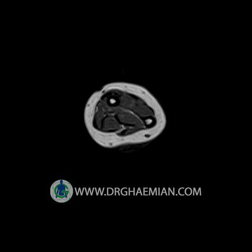 – A well – defined mass like lesion ( 10 x 15 x 18 mm ) high T2 , STIR , low T1 in distal of forearm, with post contrast mild enhancement suggestive for subcutaneous benign lesion such as fibroma , GCT & hemangioma