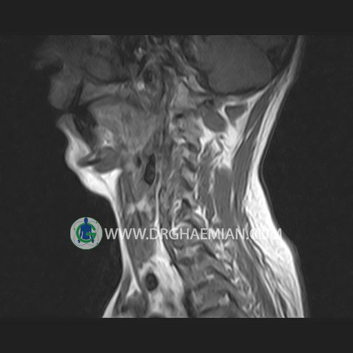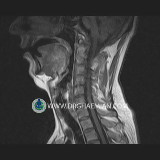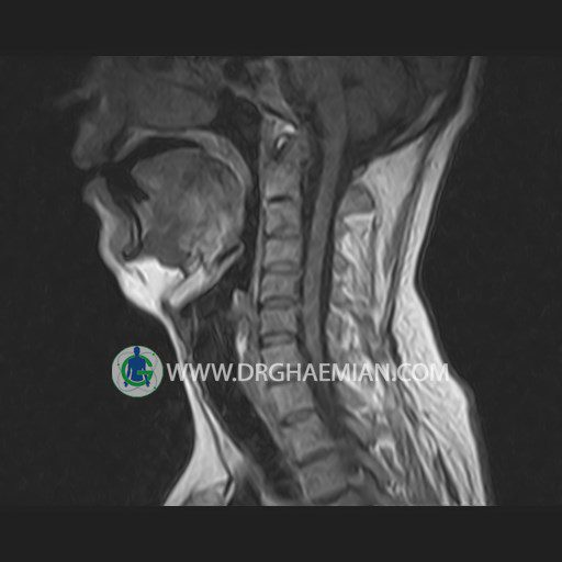 پزشکان اغلب از تصویربرداری ام آر آی برای تشخیص و درمان عارضه های پزشکی که فقط با استفاده از اشعه ایکس یا میدان مغناطیسی و امواج رادیویی قابل مشاهده است، استفاده می کنند. دستگاه ام آر آی تصاویر دقیق از ساختار های داخلی بدن ایجاد می کند. در این کیس فیوژن مادرزادی گردن، اسکولیوز به همراه اسپوندیلوز، دیهیدراته و بیرون زدگی دیسک های C3/C4/C5/C6 دیده می شود.