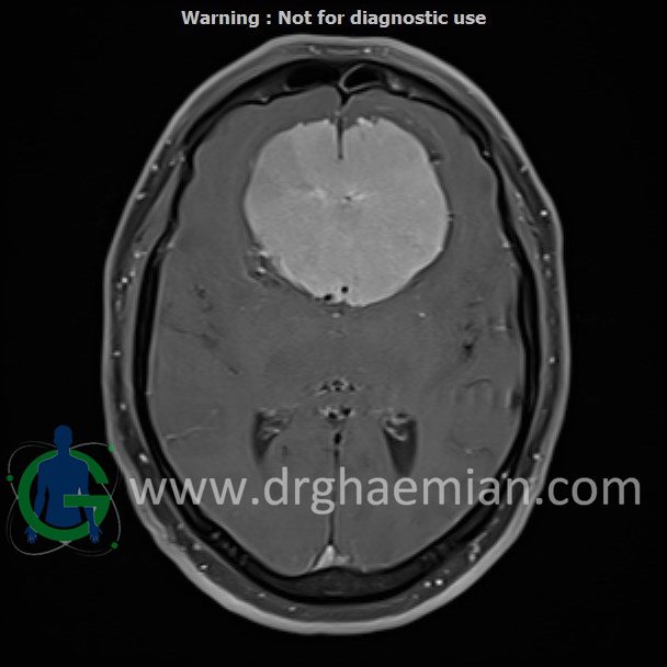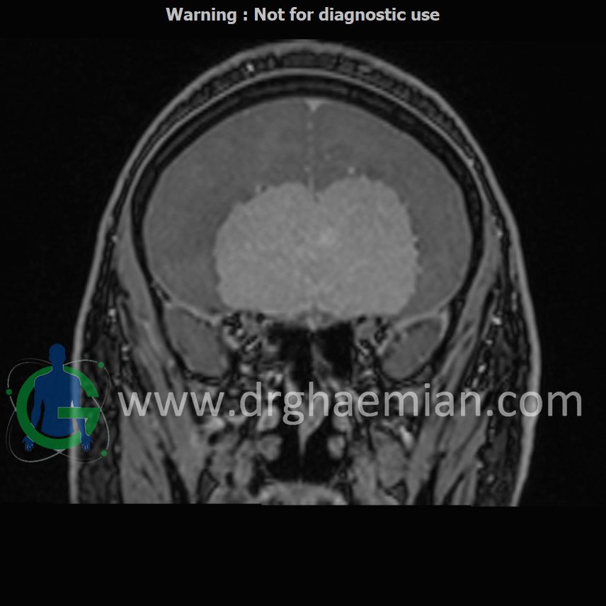 ام آر آی مغز یک روش تصویربرداری است که با استفاده از آهنربا های قوی و امواج رادیویی تصاویری از مغز و بافت های عصبی پیرامونی آن ایجاد می کند. در این کیس مننژیوما مغزی و …. دیده میشود