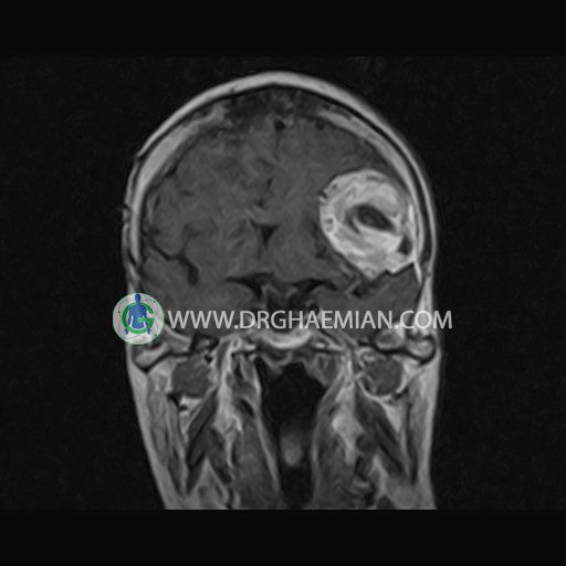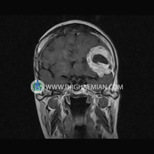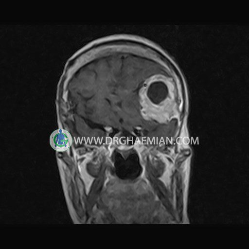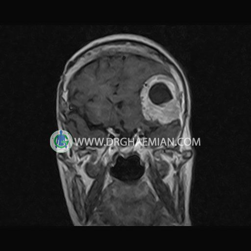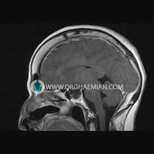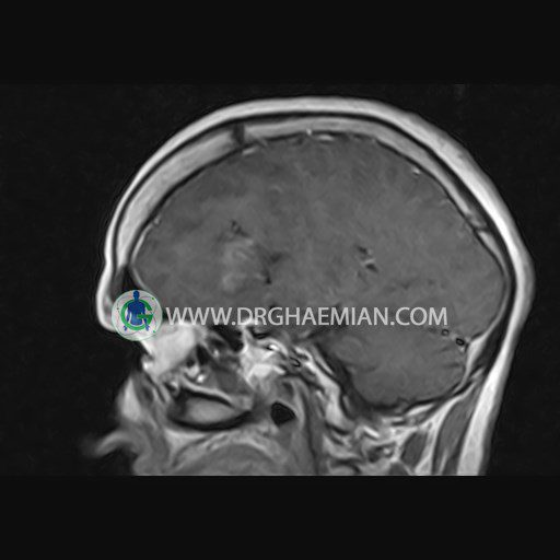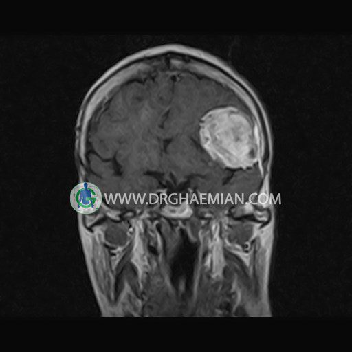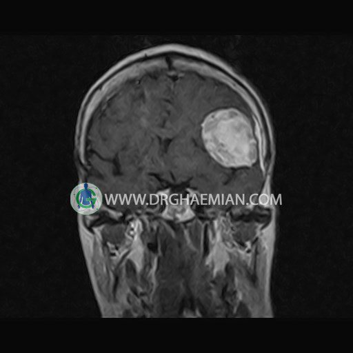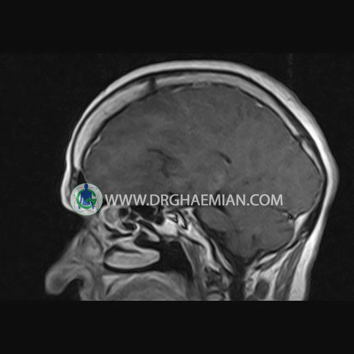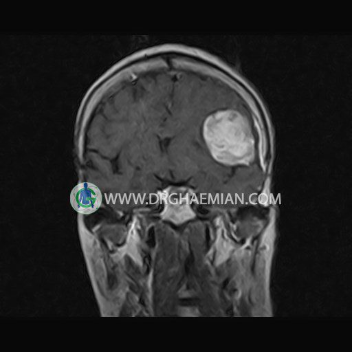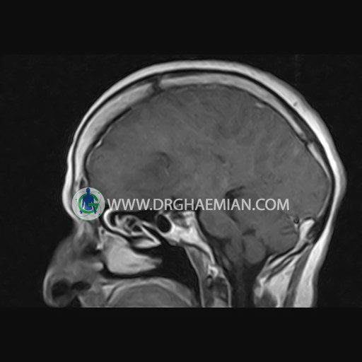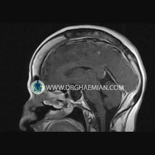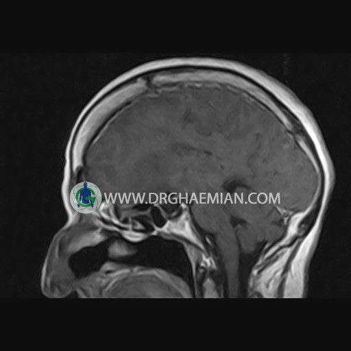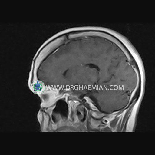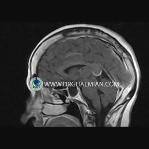 پزشکان اغلب از تصویربرداری ام آر آی برای تشخیص و درمان عارضه های پزشکی که فقط با استفاده از اشعه ایکس یا میدان مغناطیسی و امواج رادیویی قابل مشاهده است، استفاده می کنند. دستگاه ام آر آی تصاویر دقیق از ساختار های داخلی بدن ایجاد می کند. در این کیس مننژیوم بزرگی به ابعاد mm 40 x 50 x 55، سلای نسبتا خالی و تغییرات پس از جراحی مشاهده می شود.