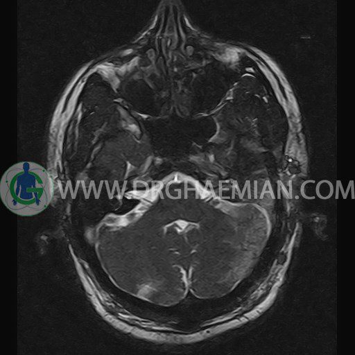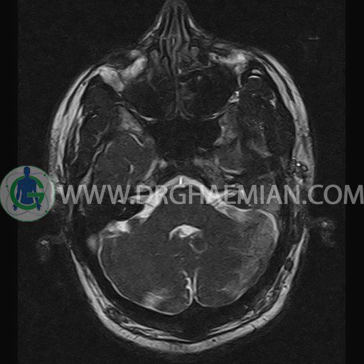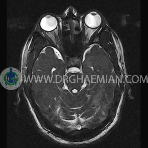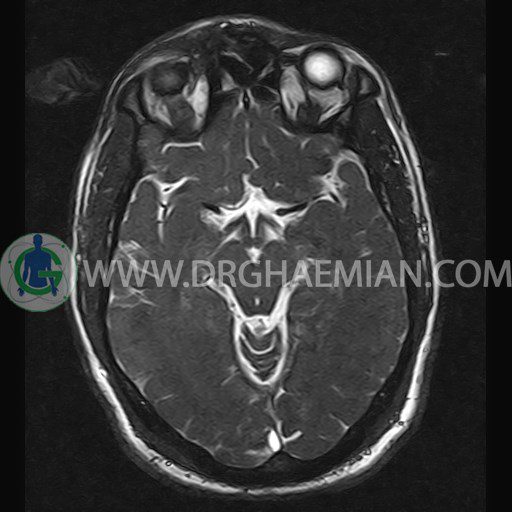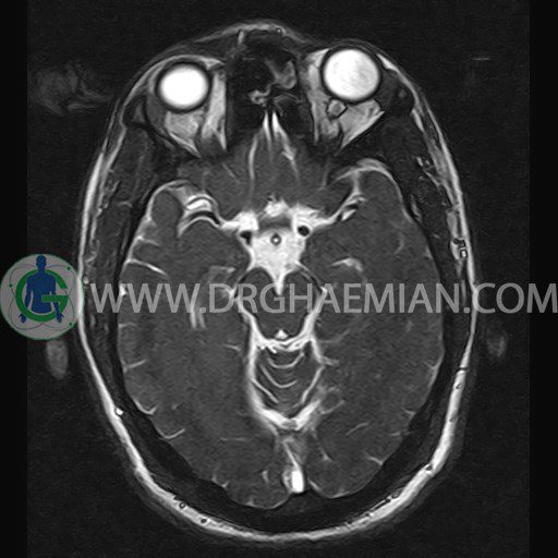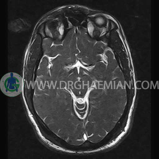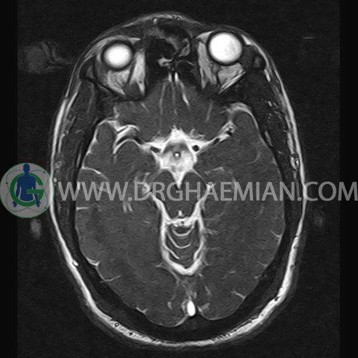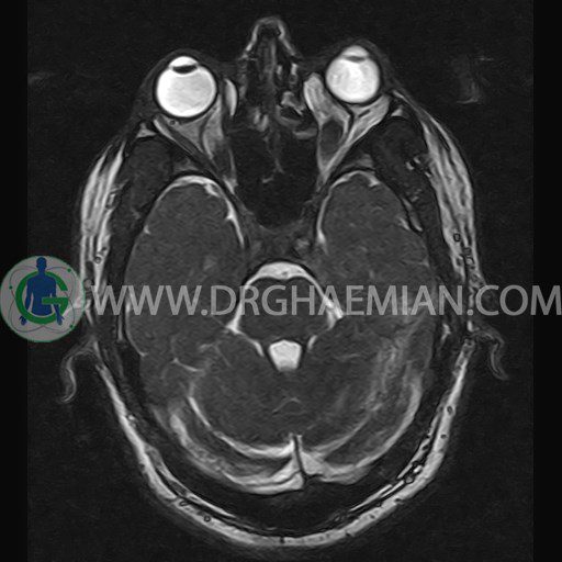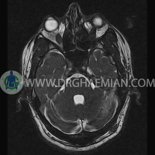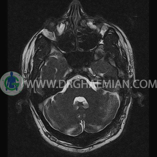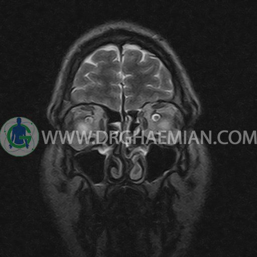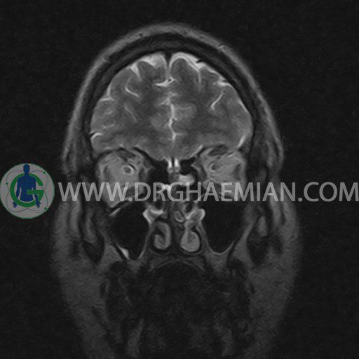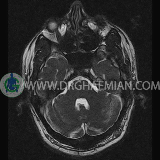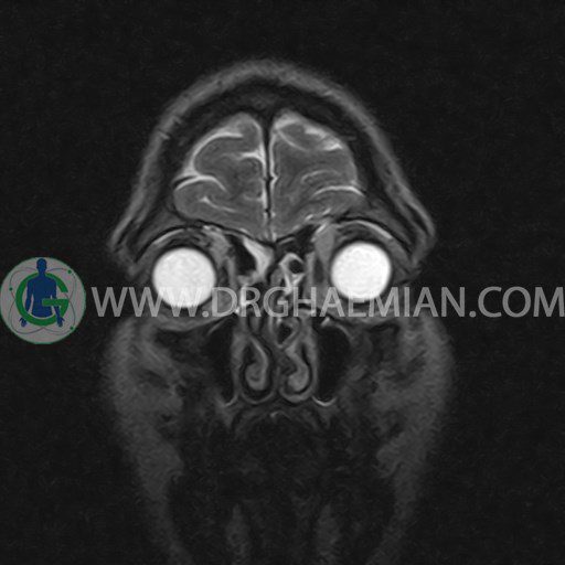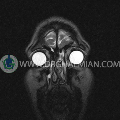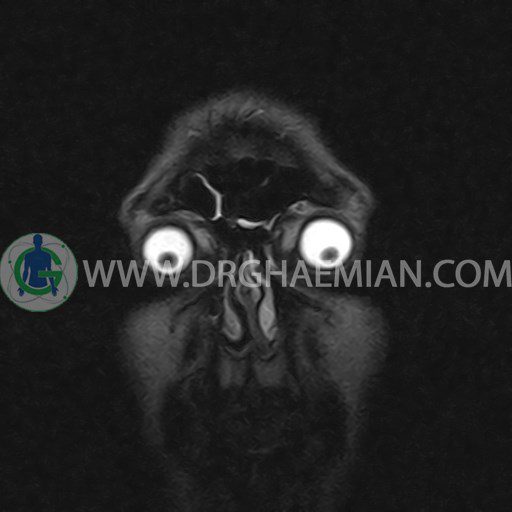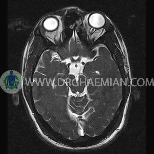 ام آر آی اوربیت با استفاده از آهنرباها و امواج رادیویی تصاویری از اوربیت ها، اعصاب، عضلات و بافت های اطراف ایجاد می کند. در این کیس نوریت بینایی دو طرفه و افزایش ضخامت مخاطی در سلول های اتموئیدی دیده می شود.