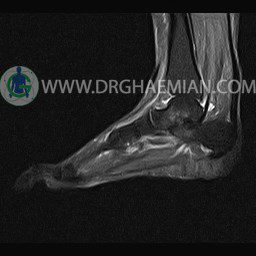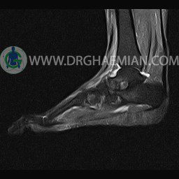 – Focal & mild bone bruise in talus & calcaneous