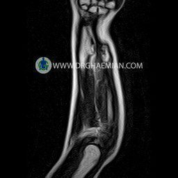 پزشکان اغلب از تصویربرداری ام آر آی برای تشخیص و درمان عارضه های پزشکی که فقط با استفاده از اشعه ایکس یا میدان مغناطیسی و امواج رادیویی قابل مشاهده است، استفاده می کنند. دستگاه ام آر آی تصاویر دقیق از ساختار های داخلی بدن ایجاد می کند. در این کیس همیملیا اولنار، اگزستوس کوچک در متافیز دیستال زند زبرین، هیپوپلازی سر پروزیمال زبن زبرین و هیپوپلازی کاپیتلوم همراه با در رفتگی مشاهده می شود.