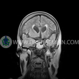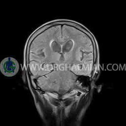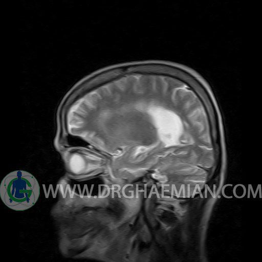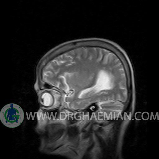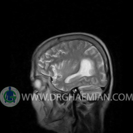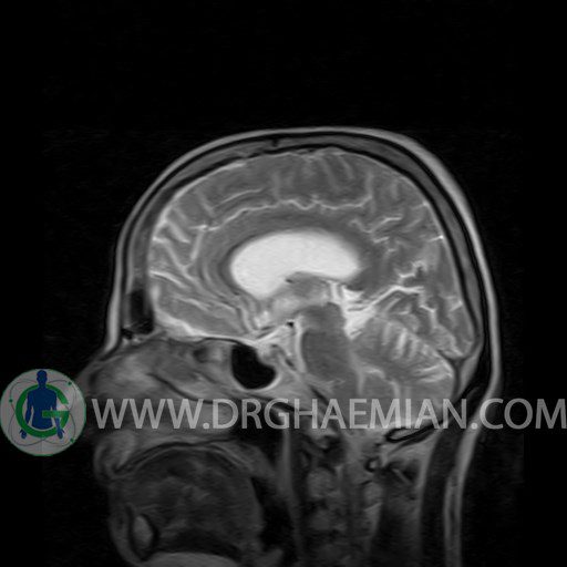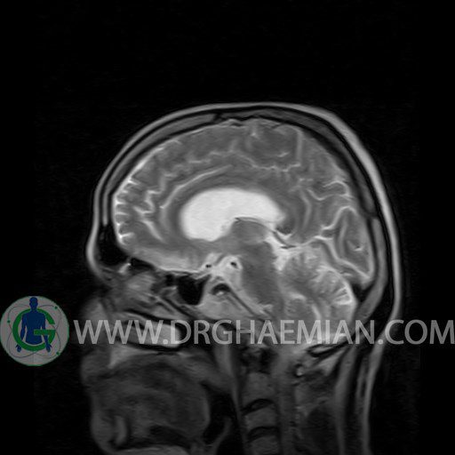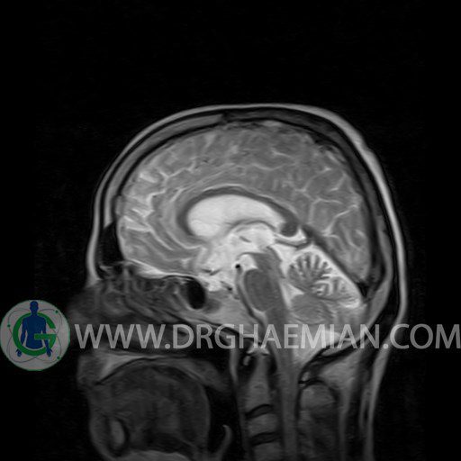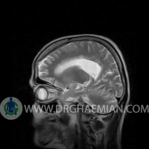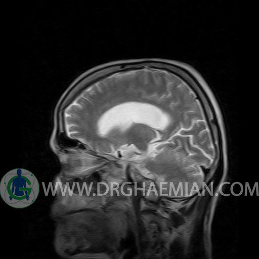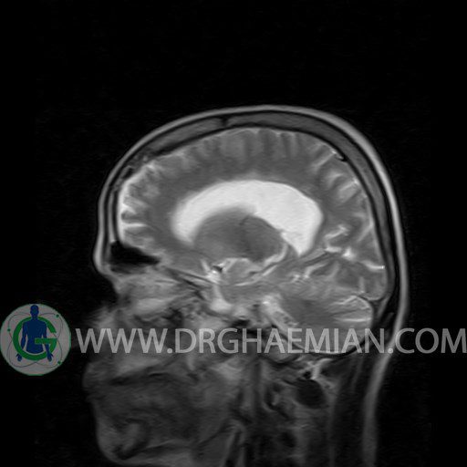 ام آر آی مغز یک روش تصویربرداری است که با استفاده از آهنرباهای قوی و امواج رادیویی تصاویری از مغز و بافت های عصبی پیرامونی آن ایجاد می کند. در این کیس هیدروسفالی غیر ارتباطی و سلای خالی دیده می شود.