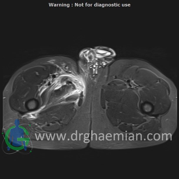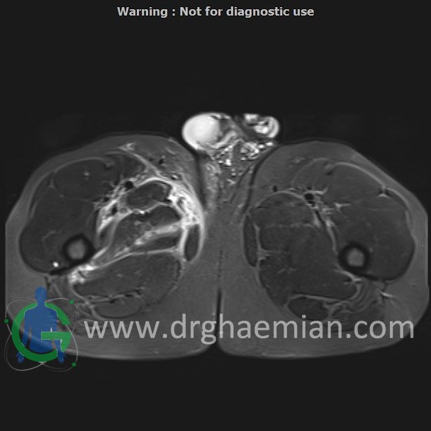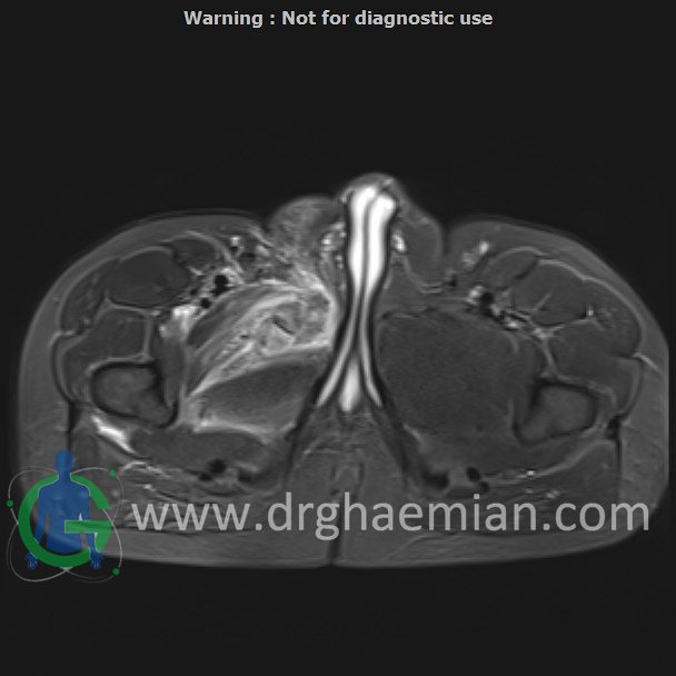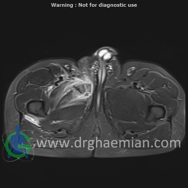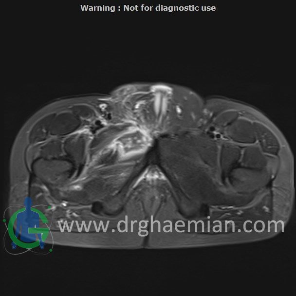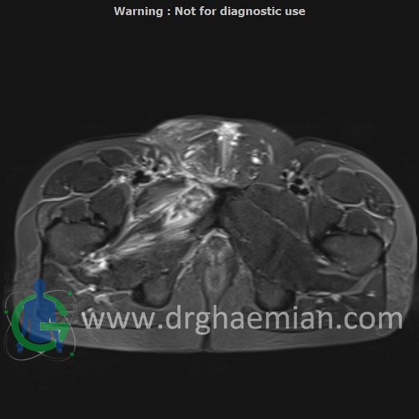 ام آر آی لگن یک روش تصویربرداری است که از طریق دستگاهی با آهنرباهای قوی و امواج رادیویی از ناحیه بین استخوان های ران تصاویری می سازد. این قسمت از بدن را ناحیه لگنی می گویند.در این کیس پارگی و کشیدگی کشاله ران دیده میشود.