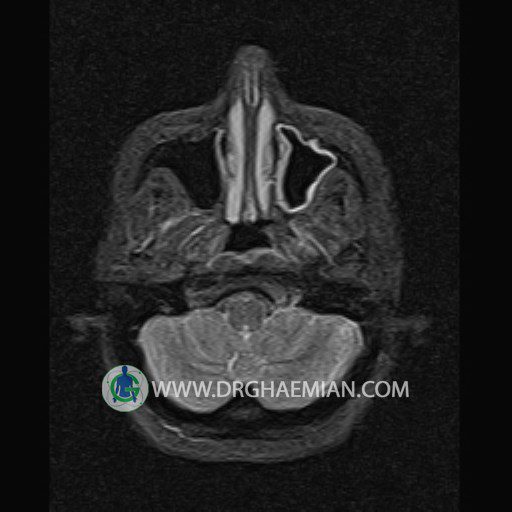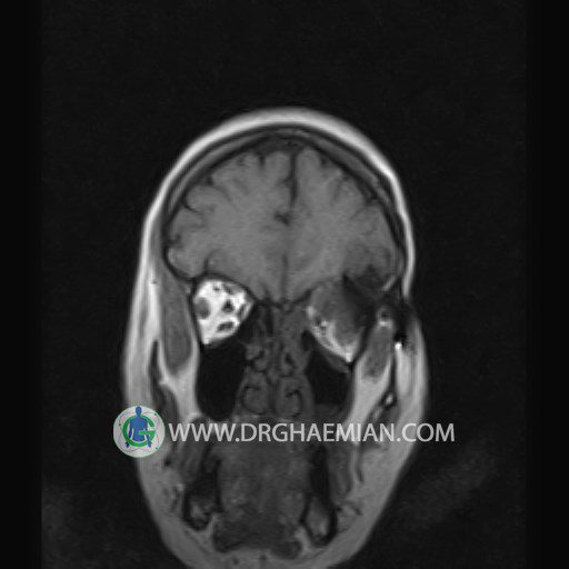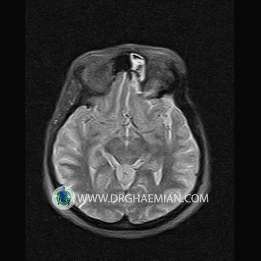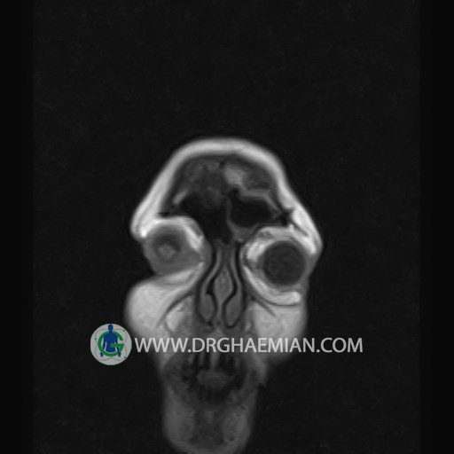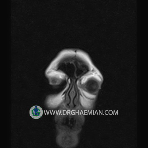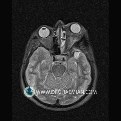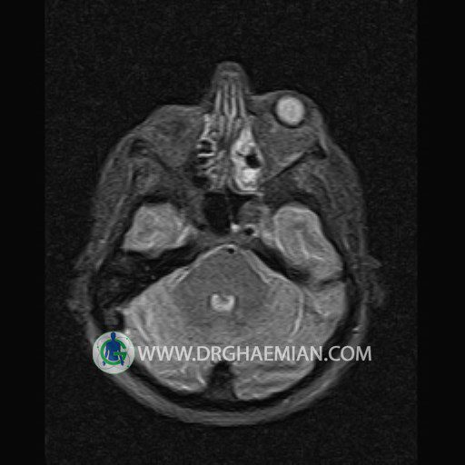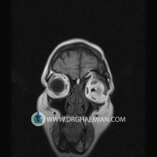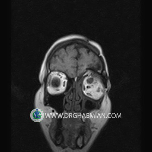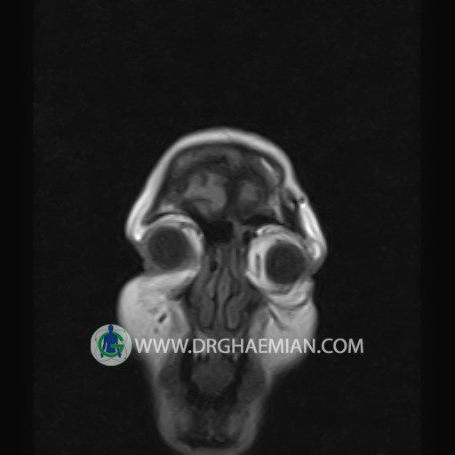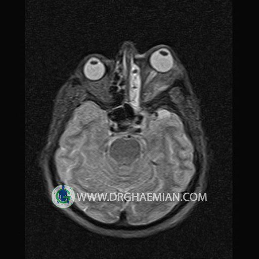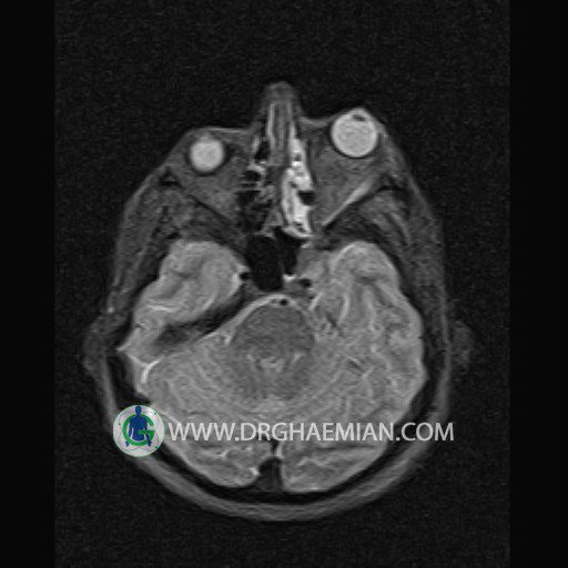 پزشکان اغلب از تصویربرداری ام آر آی برای تشخیص و درمان عارضه های پزشکی که فقط با استفاده از اشعه ایکس یا میدان مغناطیسی و امواج رادیویی قابل مشاهده است، استفاده می کنند. دستگاه ام آر آی تصاویر دقیق از ساختار های داخلی بدن ایجاد می کند. در این کیس پروپتوز (بیرون زدگی چشم)، آتروفی لوب جلویی سمت چپ، علیظ شدن مخاط در سینوس های اتموید و ماگزیلاری چپ جلویی دیده می شود.
