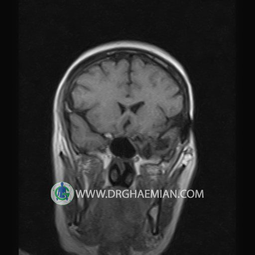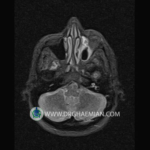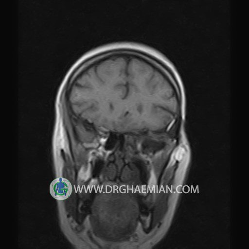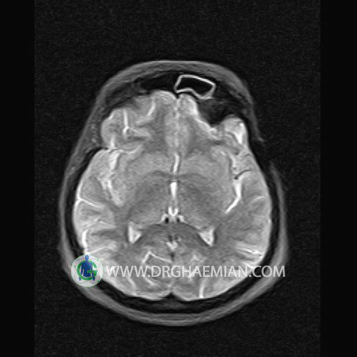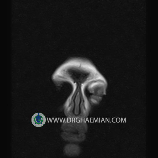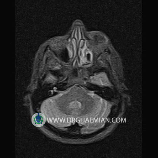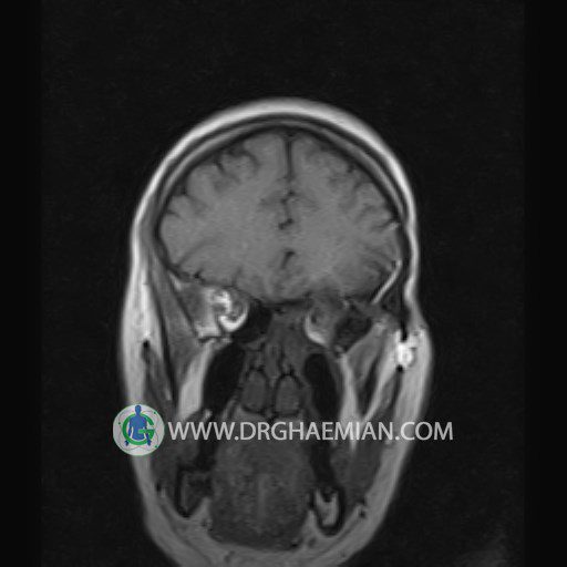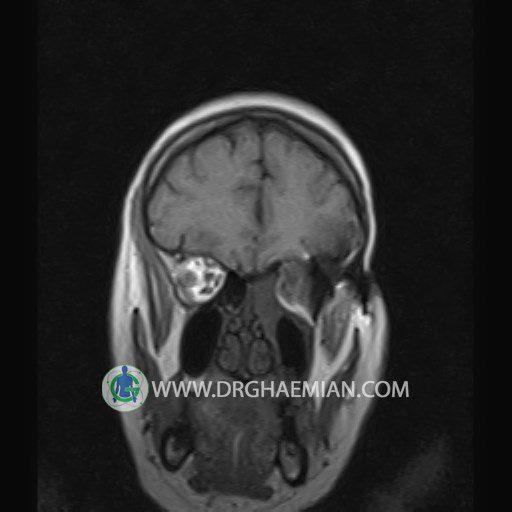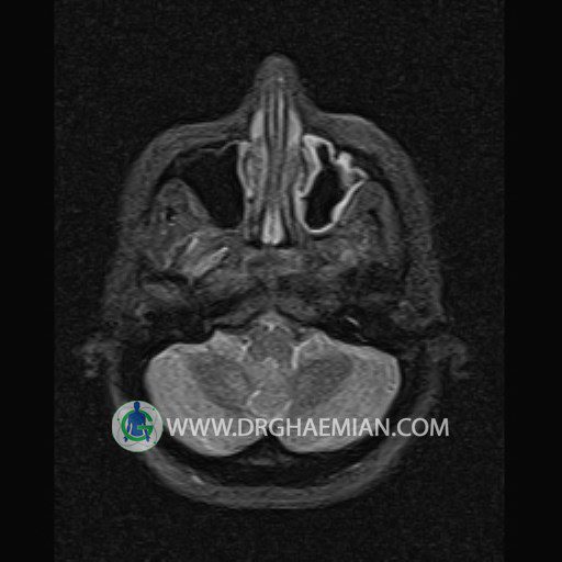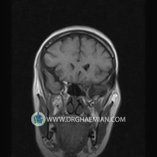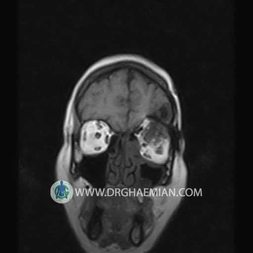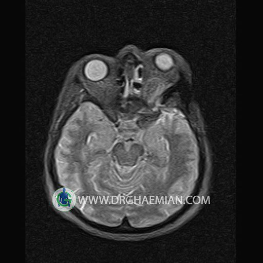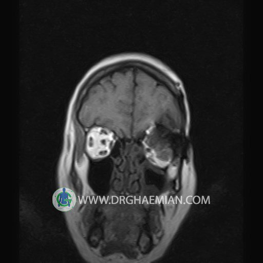 پزشکان اغلب از تصویربرداری ام آر آی برای تشخیص و درمان عارضه های پزشکی که فقط با استفاده از اشعه ایکس یا میدان مغناطیسی و امواج رادیویی قابل مشاهده است، استفاده می کنند. دستگاه ام آر آی تصاویر دقیق از ساختار های داخلی بدن ایجاد می کند. در این کیس پروپتوز (بیرون زدگی چشم)، آتروفی لوب جلویی سمت چپ، علیظ شدن مخاط در سینوس های اتموید و ماگزیلاری چپ جلویی دیده می شود.