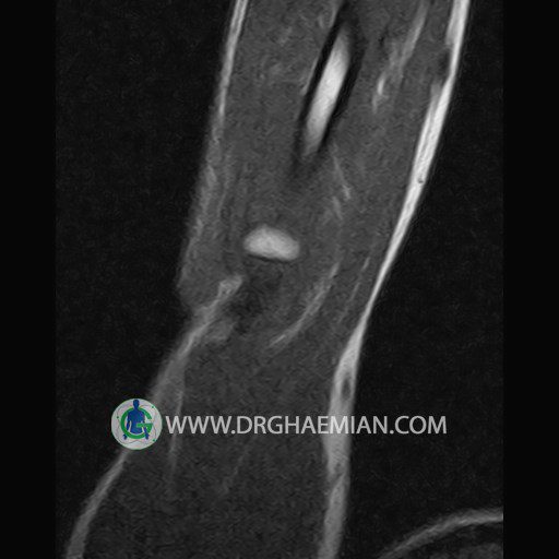پزشکان اغلب از تصویربرداری ام آر آی برای تشخیص و درمان عارضه های پزشکی که فقط با استفاده از اشعه ایکس یا میدان مغناطیسی و امواج رادیویی قابل مشاهده است، استفاده می کنند. دستگاه ام آر آی تصاویر دقیق از ساختار های داخلی بدن ایجاد می کند. در این کیس کبودی استخوان آرنج به همراه ادم مغز استخوان، تورم نسج نرم، سینوویت در آرنج بیمار مشاهده می شود.