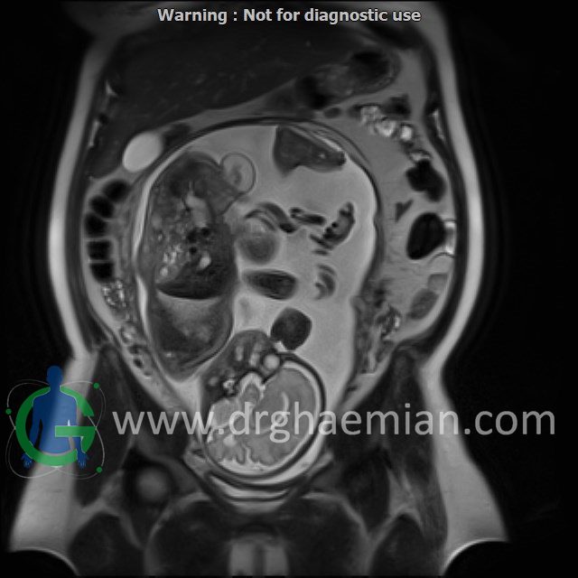 تصویربرداری تشدید مغناطیسی جنین (MRI) از یک میدان مغناطیسی قدرتمند، امواج رادیویی و یک کامپیوتر برای تولید تصاویر دقیق از جنین در داخل بدن شما استفاده می کند.در این کیس کیست های متعدد در کمر و گردن بیمار دیده میشود